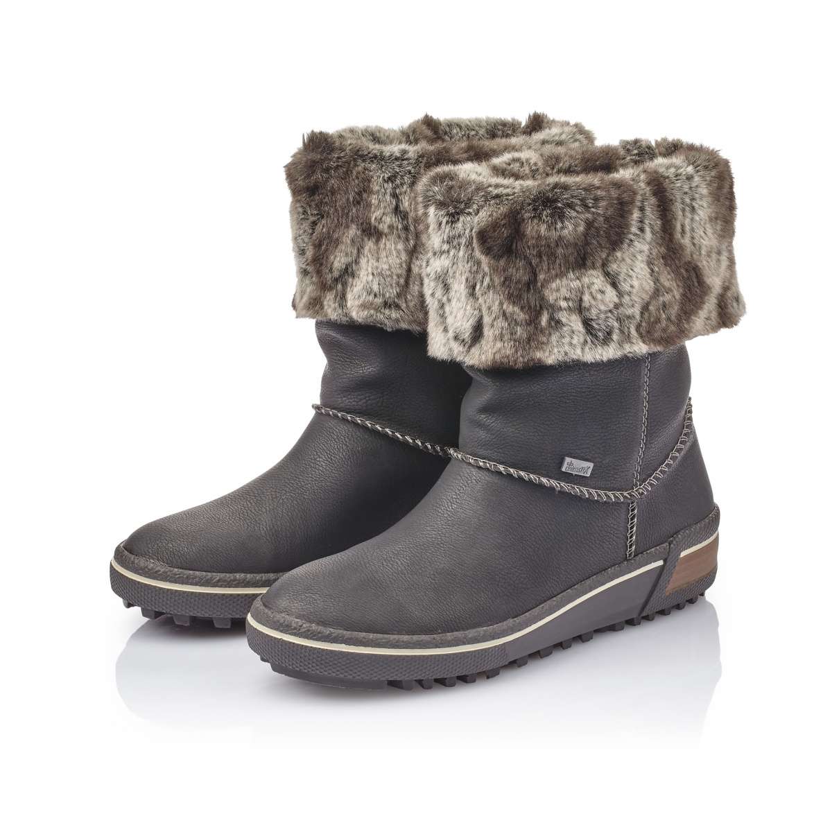 Dámské polokozačky 2v1 na klínku s pravou ovčí vlnou, značky RIEKER