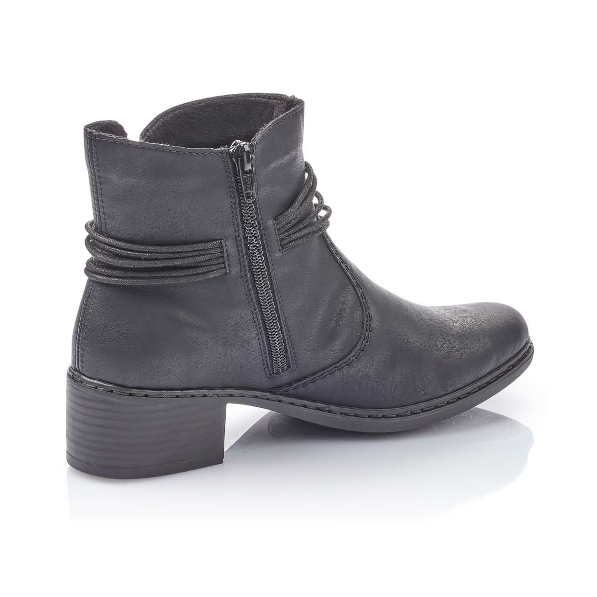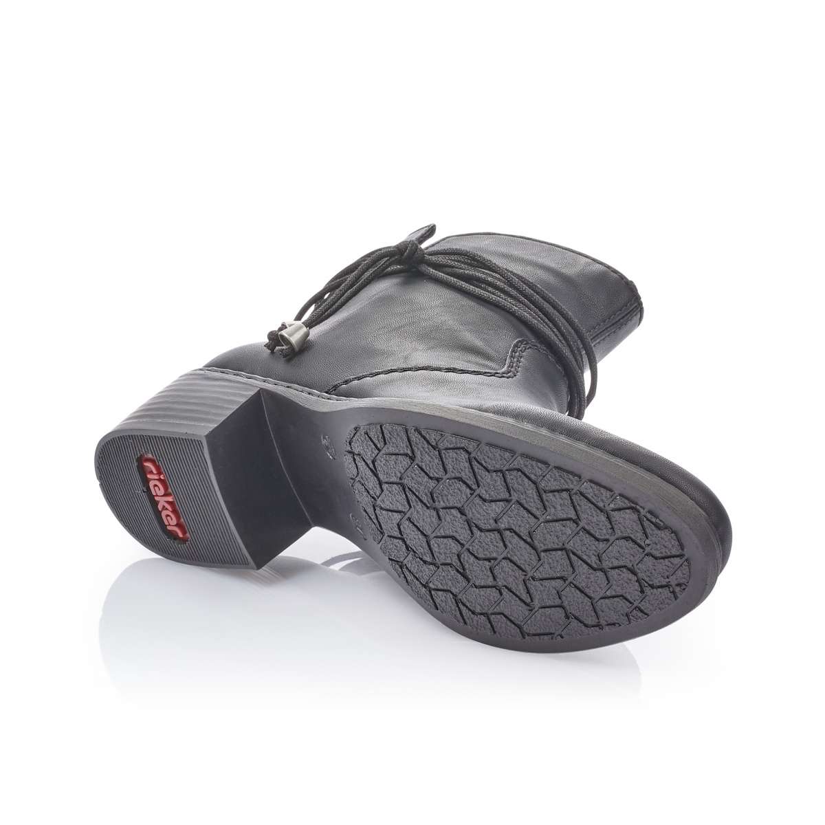 Jednoduchá dámská kotníková obuv značky Rieker černé barvy ideálně doplní Vaše outfity jak do práce, tak na procházky městem. Kulatá špička, hladký svršek, zdobné šňůrky kolem kotníku se stříbrným zakončením či výkroj jsou hlavními znaky této obuvi.