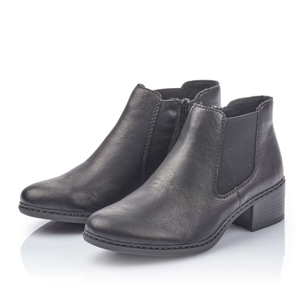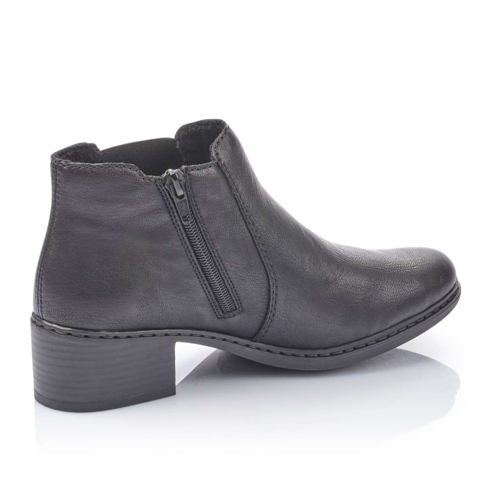 Kotníková obuv černé barvy s velurovým zateplením, značky RIEKER.
