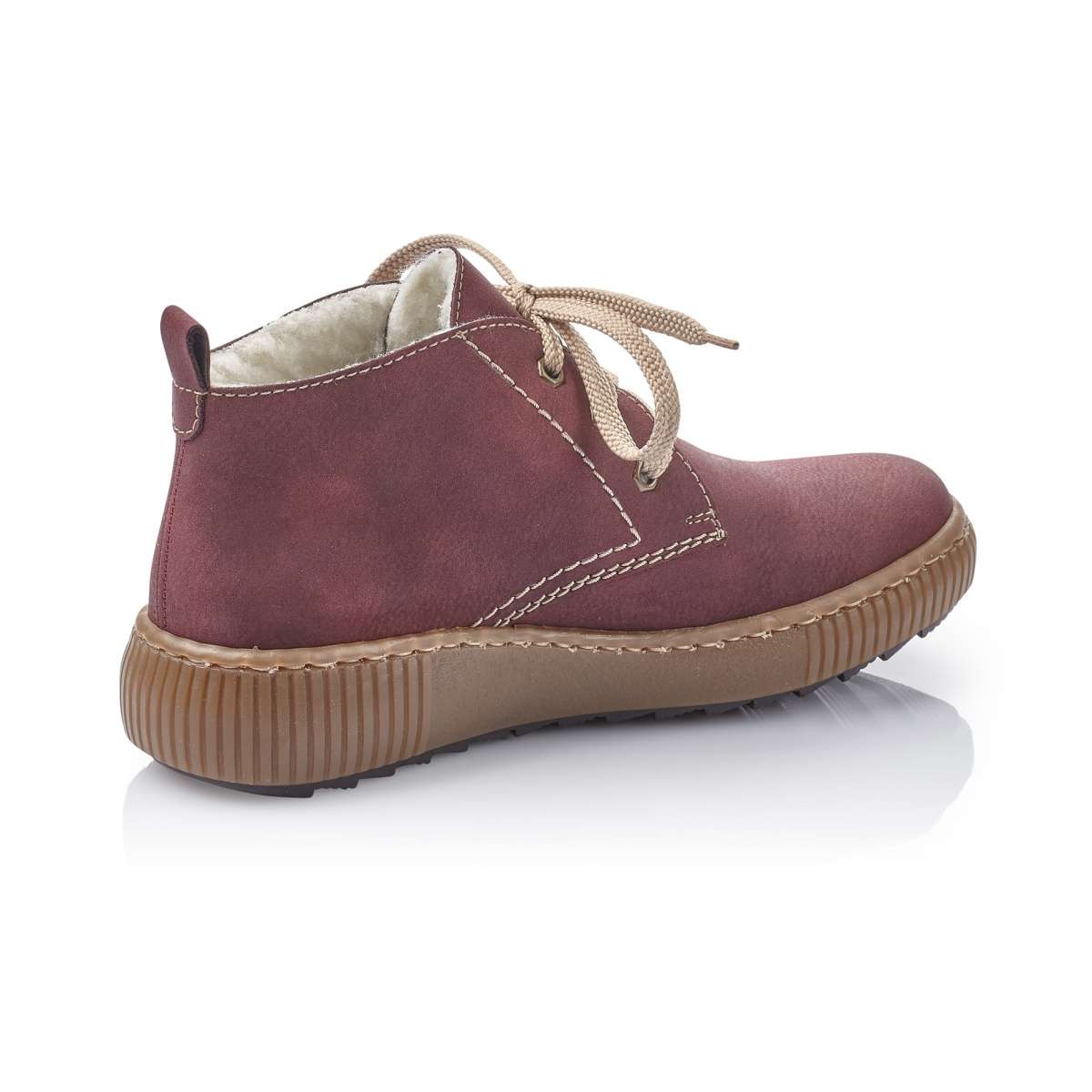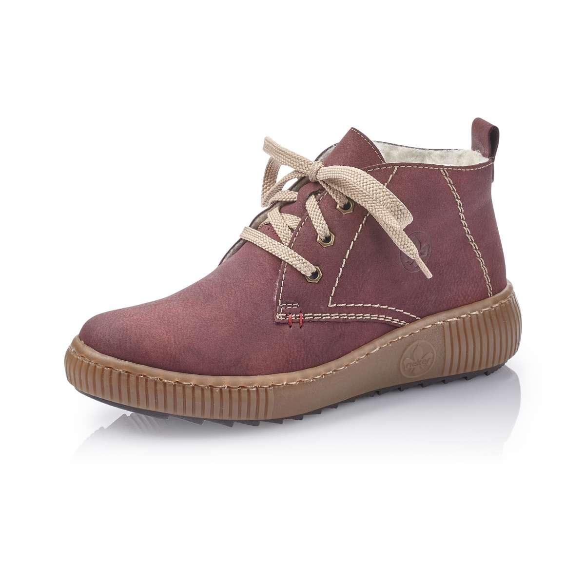 Dámská kotníková obuv pro všechny příležitosti je zdobena znakem Rieker. Na první pohled Vás upoutá svou zajímavou barvou a vyšší designovou podešví. Šněrováním si pak obuv upravíte přímo k Vaší noze. Tento model s teplou podšívkou užijete jak při procházkách zimní krajinou s rodinou, tak při cestě do práce.
