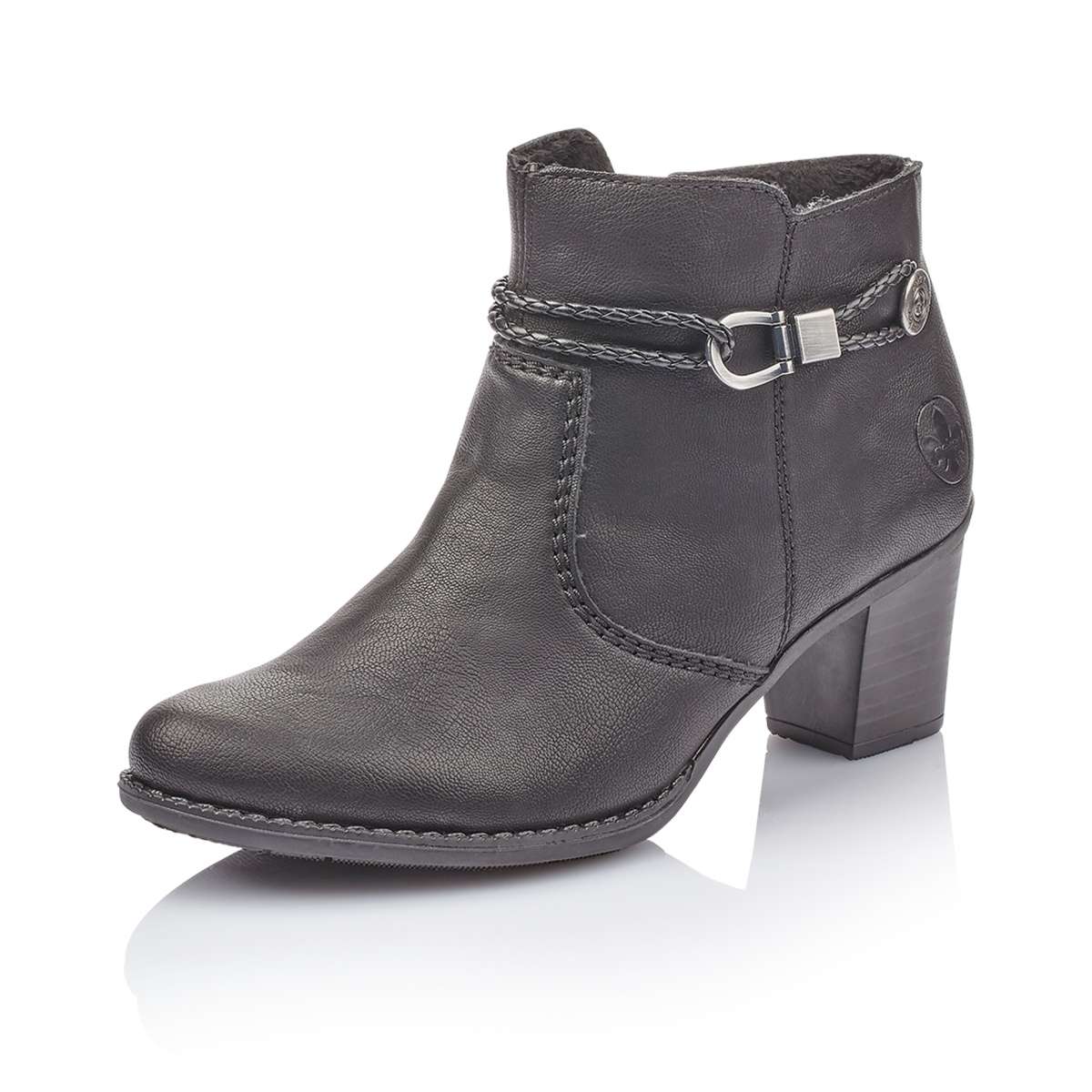 Dámská kotníková obuv s ozdobným provázkem a kovovými aplikacemi, značky RIEKER.