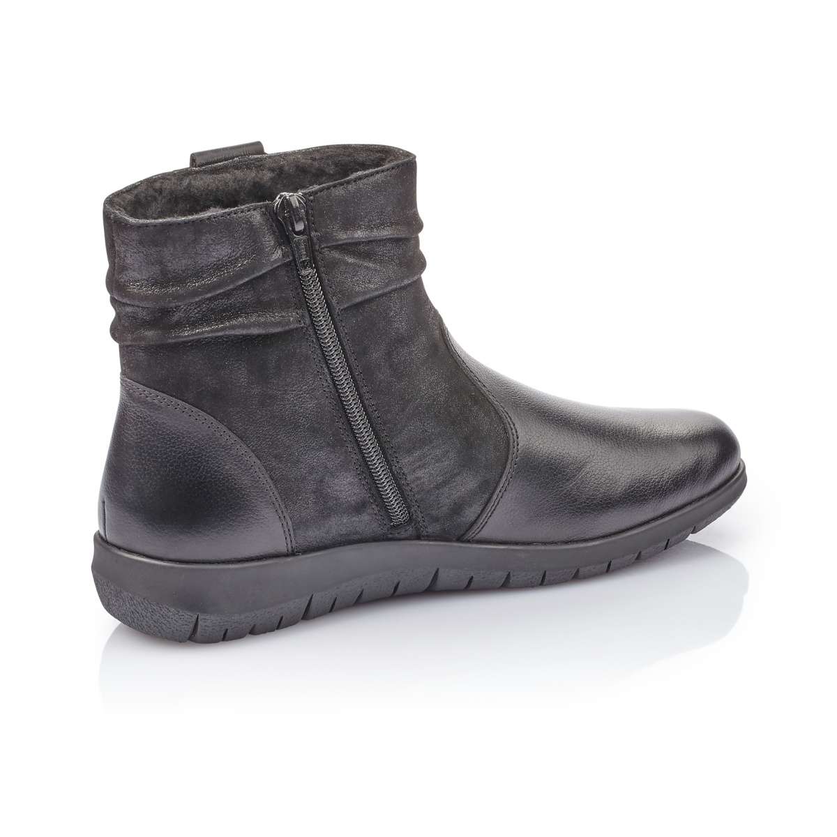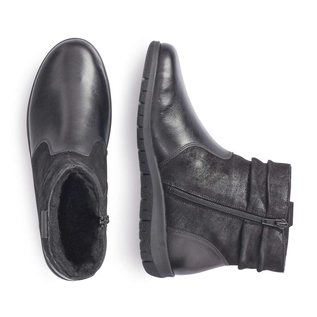 Pro snadné obutí je zapracován funkční zip z vnitřní strany. Boty jsou zdobené unikátní kombinací hladkého a semišového vzhledu i řasením kolem kotníku. Uvnitř boty je použita stélka z paměťové pěny a ta se vyznačuje pohodlím. V sychravém období oceníte funkční vrstvu RikerTex, díky budete mít nohy v teple a suchu.