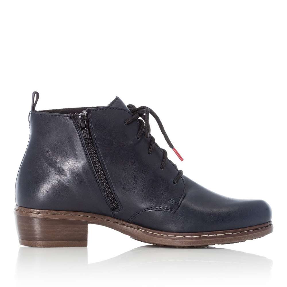 Jednoduché dámské kotníky mají svršek v krásné modré barvě a společně s hnědou podešví vypadají velice elegantně. Decentní prošití a vytlačené logo v patní části jsou zdobnými prvky této boty. Nazouvání Vám usnadní funkční zip z vnitřní strany a praktické šněrování.