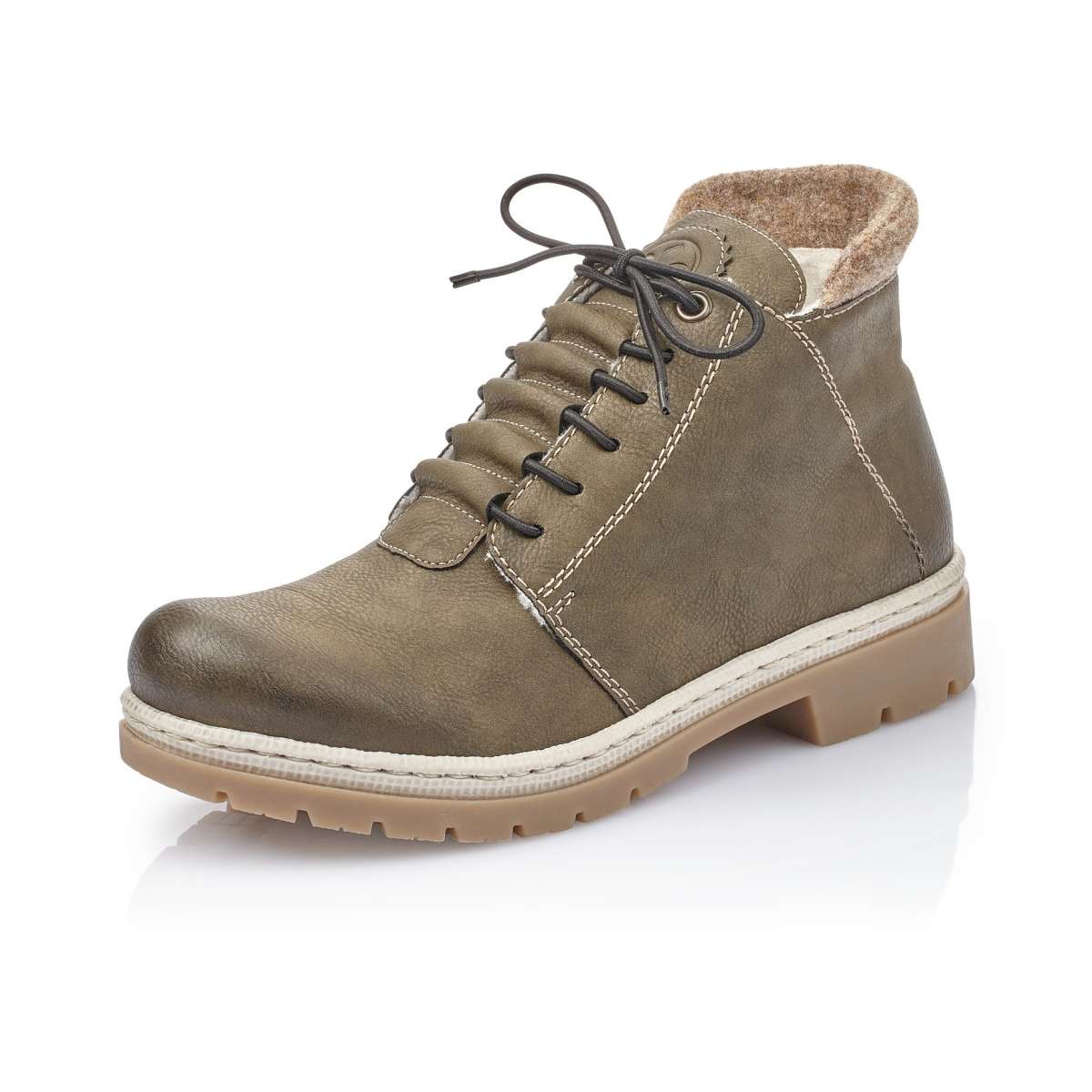 Model od značky RIEKER Vás nadchne svou zelenou barvou a textilním lemem v horním okraji boty. Černé tkaničky na šněrování si můžete utáhnout přímo na Vaši nohu. Díky zateplení je tato obuv jako stvořená do chladných zimních dnů.