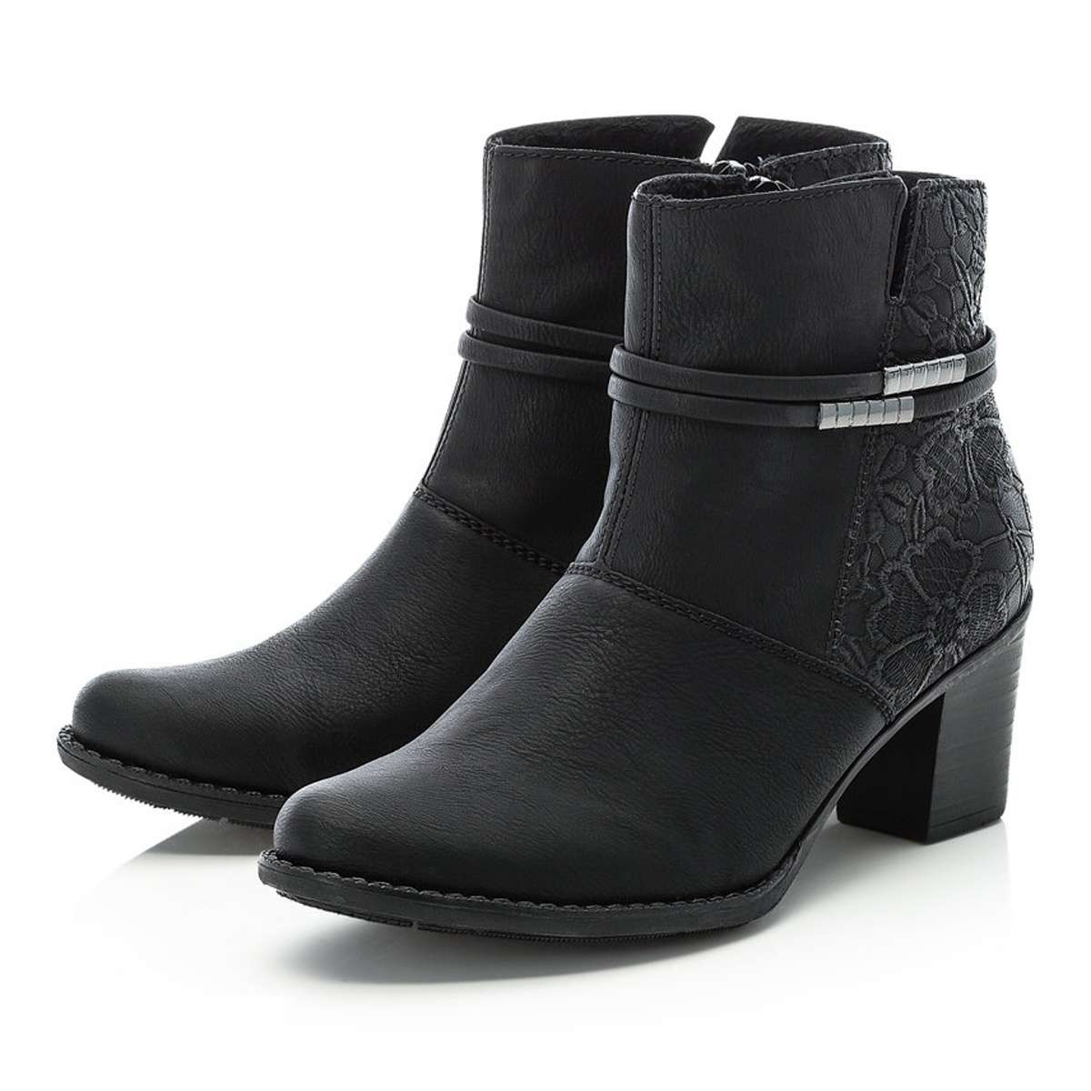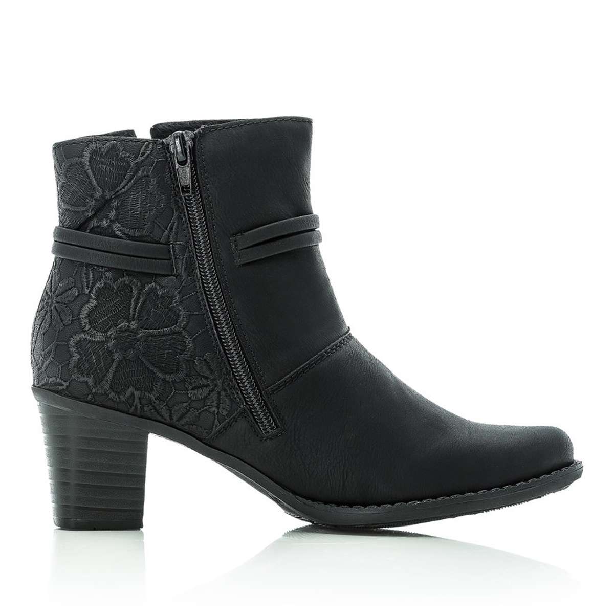 Dámský kotník na středním podpatku s květinovým vzorem, značky RIEKER.