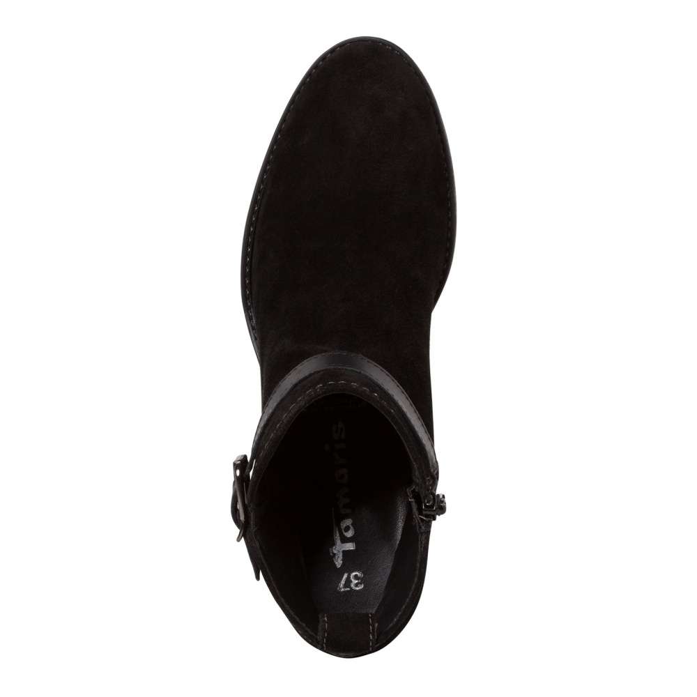 Kotníčkové dámské boty od značky Tamaris mají nadčasový střih se zajímavým páskem s přezkou kolem kotníku. Svršek z přírodní usně snadno zkombinujete s oblíbenými outfity. Obouvání Vám ulehčí pružná malá gumička ve výkroji a funkční zip na vnitřní straně, což určitě oceníte. Tento model bude Vaším skvělým společníkem při jakýchkoliv příležitostech.