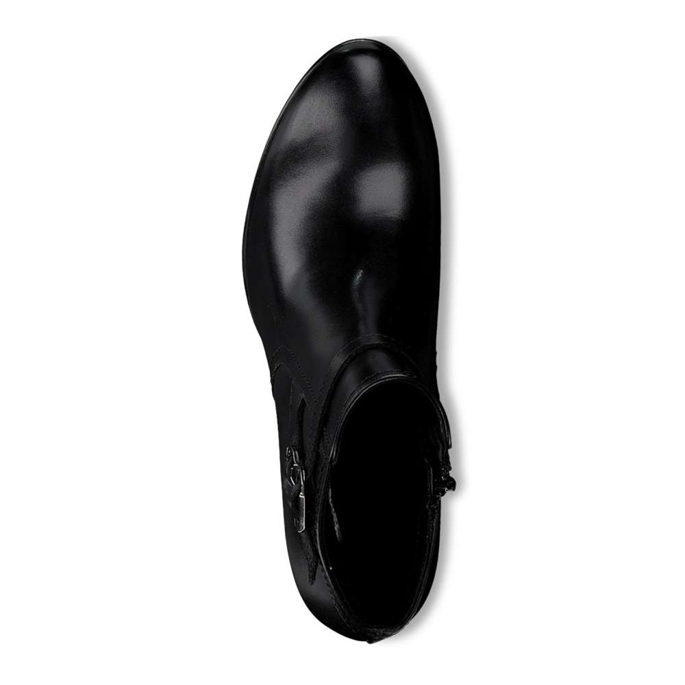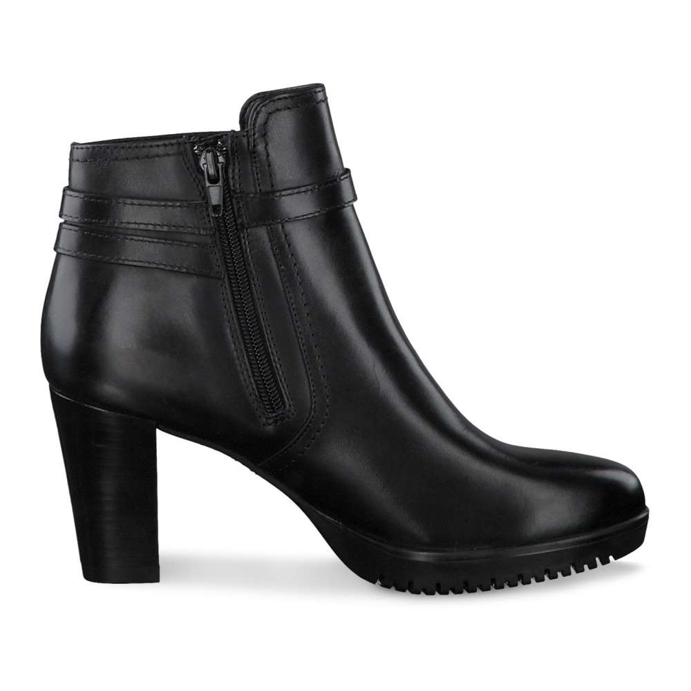 Dámská kotníková obuv černé barvy od značky Tamaris je potažená hladkou přírodní usní. Dva decentní pásky s přezkou dodávají ten správný šmrnc, díky nimž si tyto boty zamiluje každá z Vás. K snadnějšímu nazutí slouží praktický zip z vnitřní strany. S tímto kouskem budete zářit při chladných podzimních dnech jak v práci, tak i třeba při nějaké společenské příležitosti.