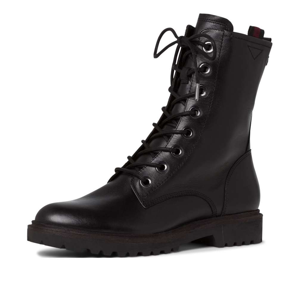 Černé kotníkové boty Tamaris mají kulatou špičku a hladký povrch z pravé přírodní usně. Mají šněrování pro úpravu boty přímo k Vaší noze a na vnitřní straně zip pro jednodušší obutí.