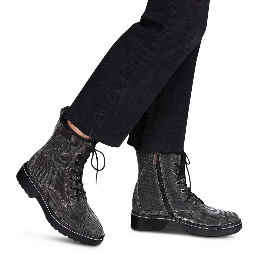 Krásné, extravagantní, i tak by se daly nazvat tyto úžasné boty značky TAMARIS, které zaručeně oživí Váš outfit. Mají kulatou špičku, lesklý textilní svršek, prošití v barvě boty, šněrování pro úpravu boty přímo k Vaší noze a na vnitřní straně zip pro jednodušší prozutí. Tento model bude to pravé pro ty, co se nebojí ukázat svůj jedinečný styl.