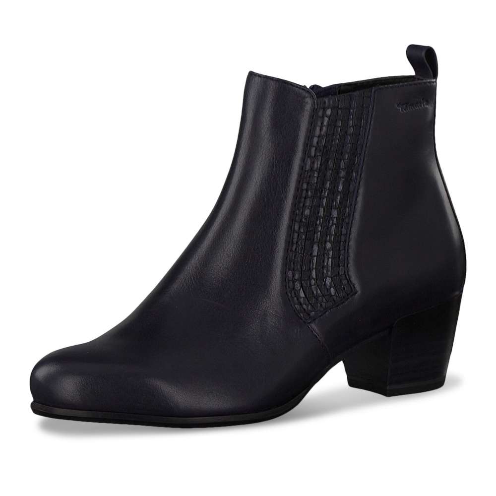 Kotníčkové dámské boty TAMARIS mají nadčasový střih se zajímavým zdobením a černý svršek z kvalitní kůže snadno zkombinujete s oblíbenými outfity. Jistě oceníte postranní zip zaručující rychlé obutí. Černá podešev je doplněna podpatkem, který se postará o dokonalou stabilitu při chůzi. Této obuvi to bude slušet se Slim kalhotami nebo se sukní.