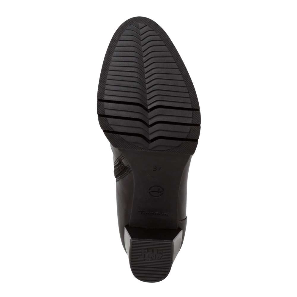 Vyšší kotníková obuv značky TAMARIS, má vysoký podpatek s decentním prošíváním a pokrčením v horní kotníkové části. Pro snadné obutí je na vnitřní straně použit funkční zip a malá pružná gumička, která se přizpůsobí velikosti Vašeho lýtka. Měkká stélka Touch It z paměťové pěny je správnou volbou pro Vaše pohodlí. Podešev s cca 7,5 cm vysokým podpatkem má patentovaný protiskluzový prvek ANTISLIDE, díky kterému se nemusíte bát o bezpečnost po celý den. S tímto elegantním modelem se za Vámi bude každý otáčet.