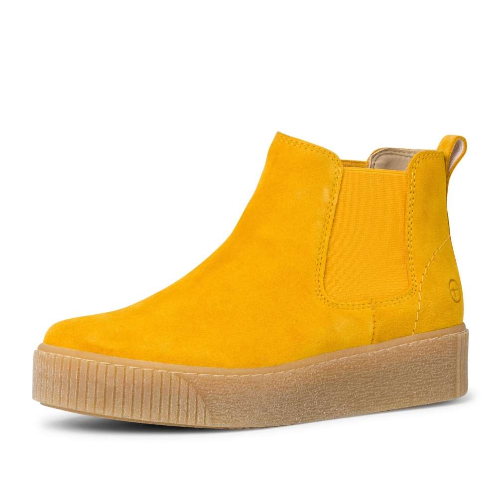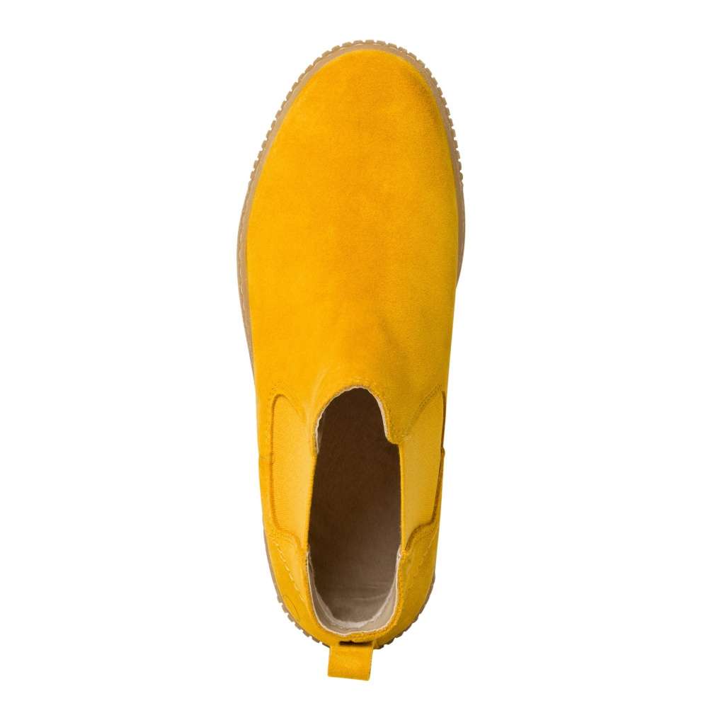 Kotníková obuv z pravé kůže v hořčicově žluté barvě, značky TAMARIS.