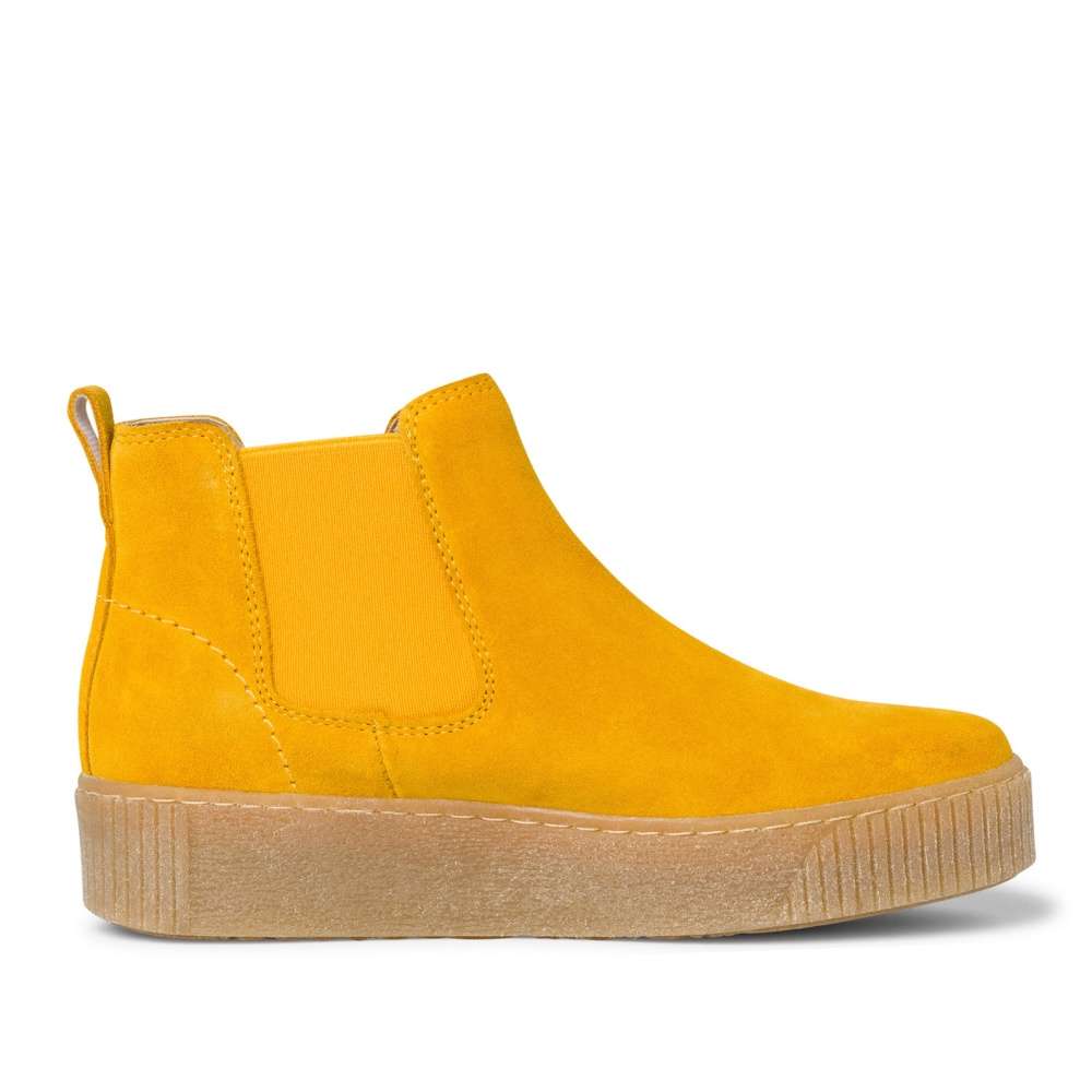 Tento model v oblíbeném hořčicově žlutém provedení rozzáří každý Váš outfit. Vsazené gumičky po bocích usnadní obutí a pruží při chůzi.