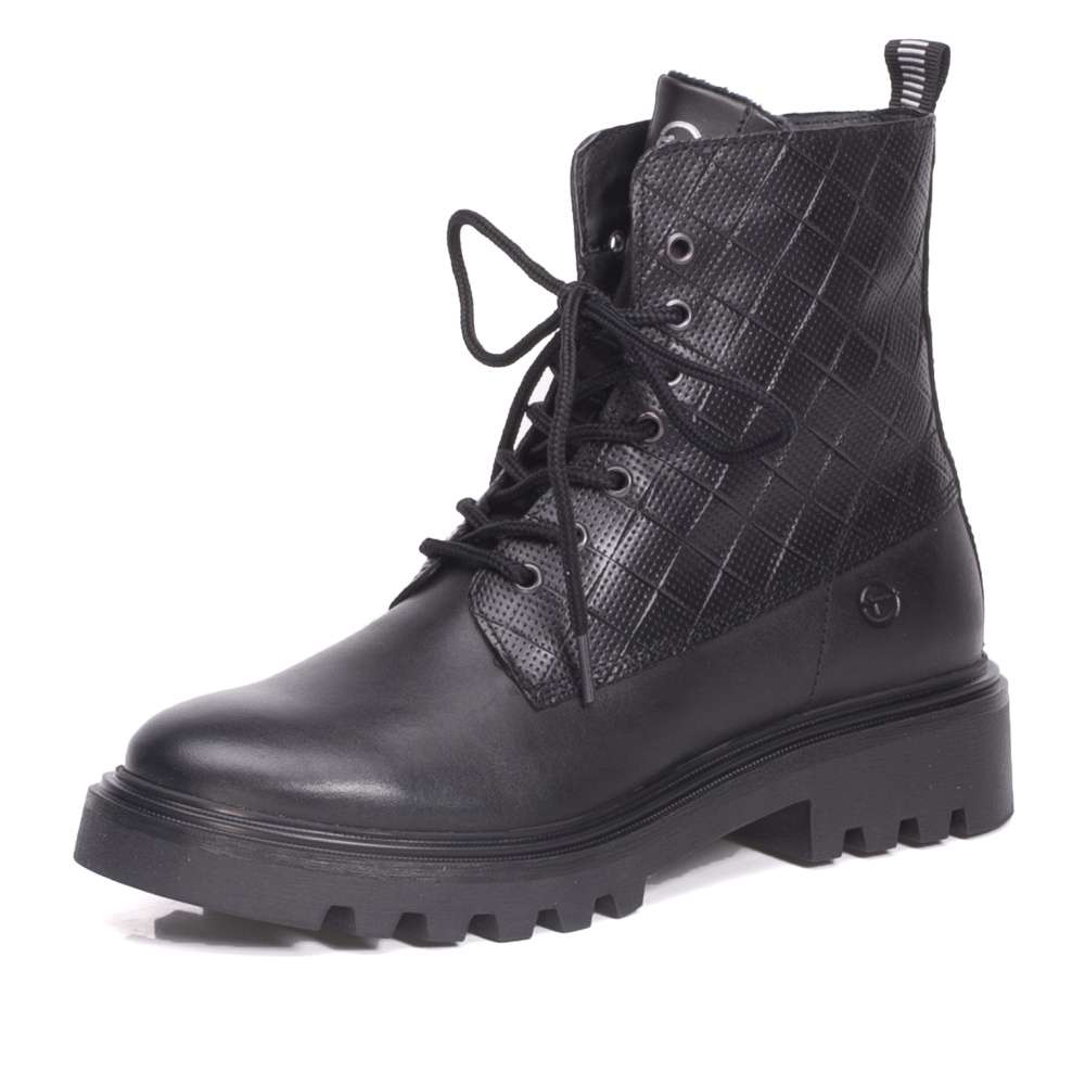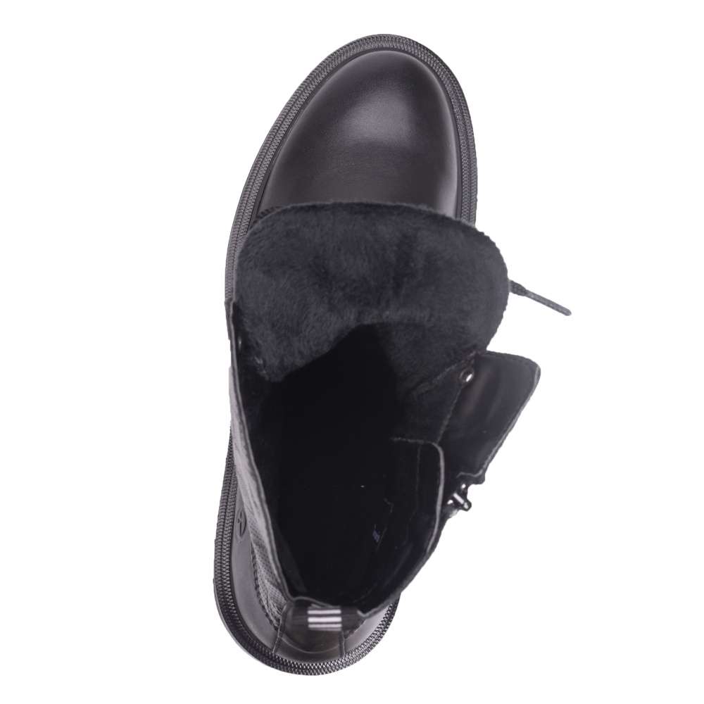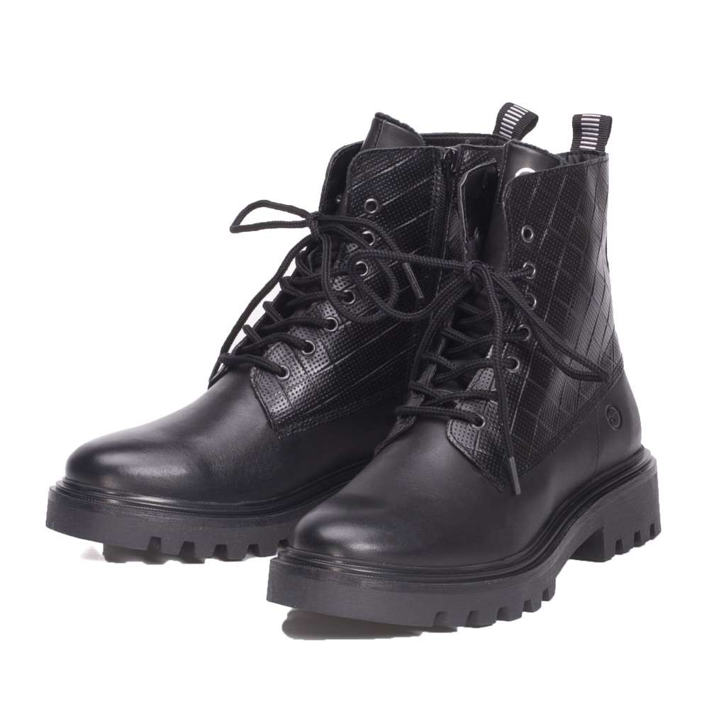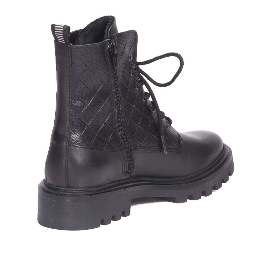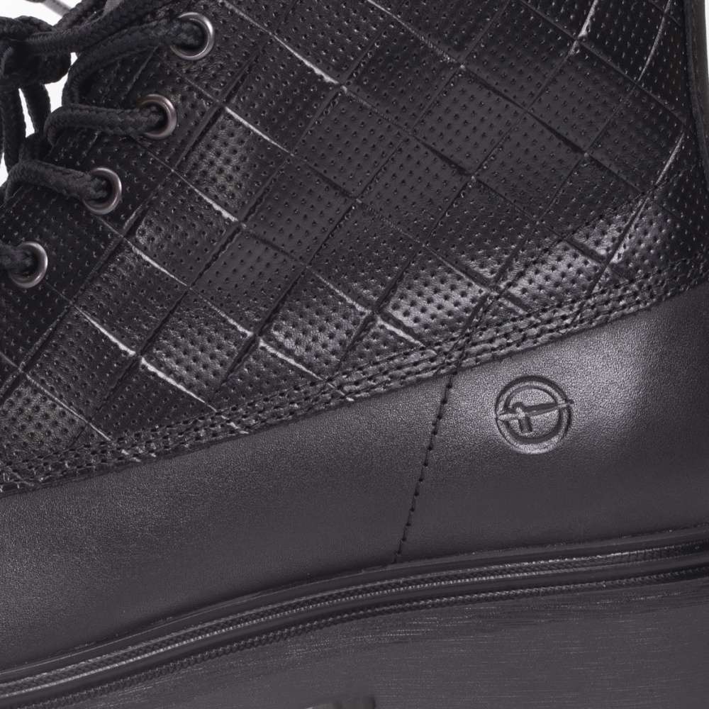 Hladký svršek v kombinaci s jemným vzorem, šněrováním na nártu a funkčním zipem z vnitřní strany, to je to, co dělá tuto botu jedinečnou.