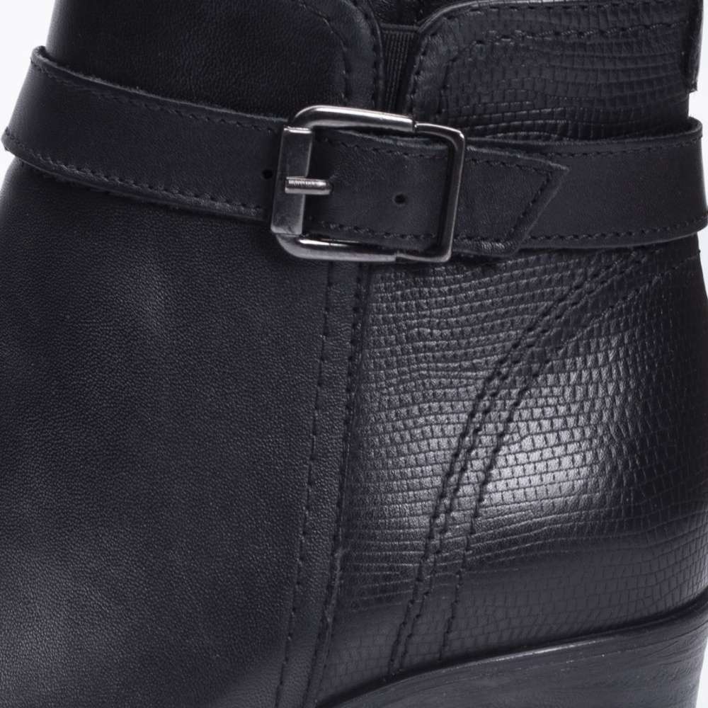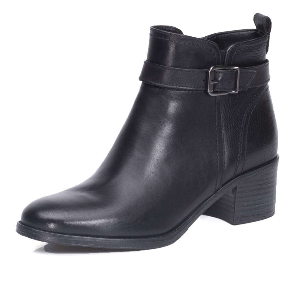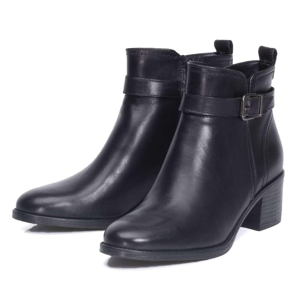 Kotníčkové dámské boty značky TAMARIS mají nadčasový střih se zajímavým páskem s přezkou kolem kotníku.