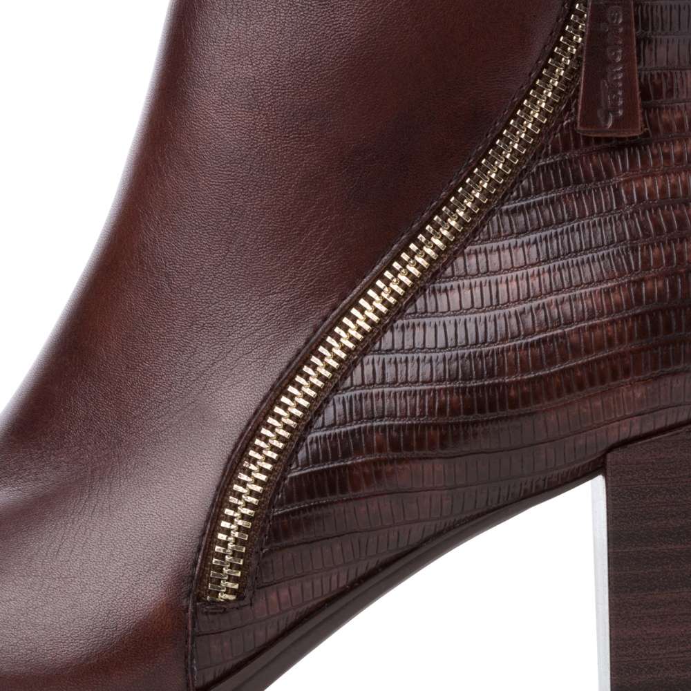 Zdobnými prvky svrchní části jsou patní díl hadího vzoru a zajímavě všitý zip z vnější strany obuvi.