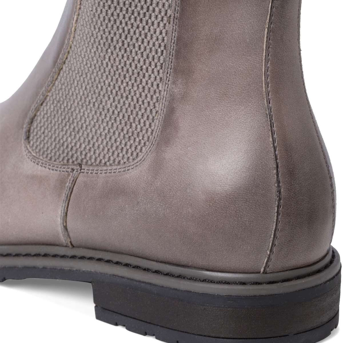 Hladký kožený svršek zdobný jemným prošíváním a po stranách vsazenými gumičkami, které společně s poutkem usnadní nazouvání.