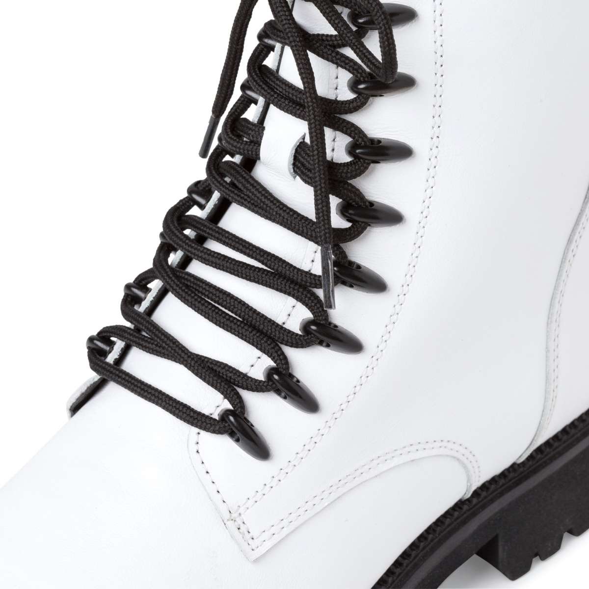 Hladký svršek je zdobný kovovým uchycením kulatých tkaniček a prošíváním, které na obuvi vytváří zajímavé linie. Snadno si obuv nazujete a přizpůsobíte dle požadavků díky funkčnímu zipu na vnitřní straně a šněrování.