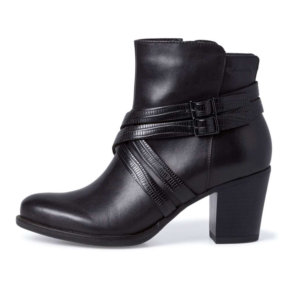 Dámský model značky TAMARIS je jedinečnou obuví, která nesmí chybět ve Vašem botníku. Tuto kotníkovou obuv zdobí dvojité pásky s imitací hadí kůže a je doplněná přezkami. Nechybí ani logo, které je vytlačené na vrchní části.
