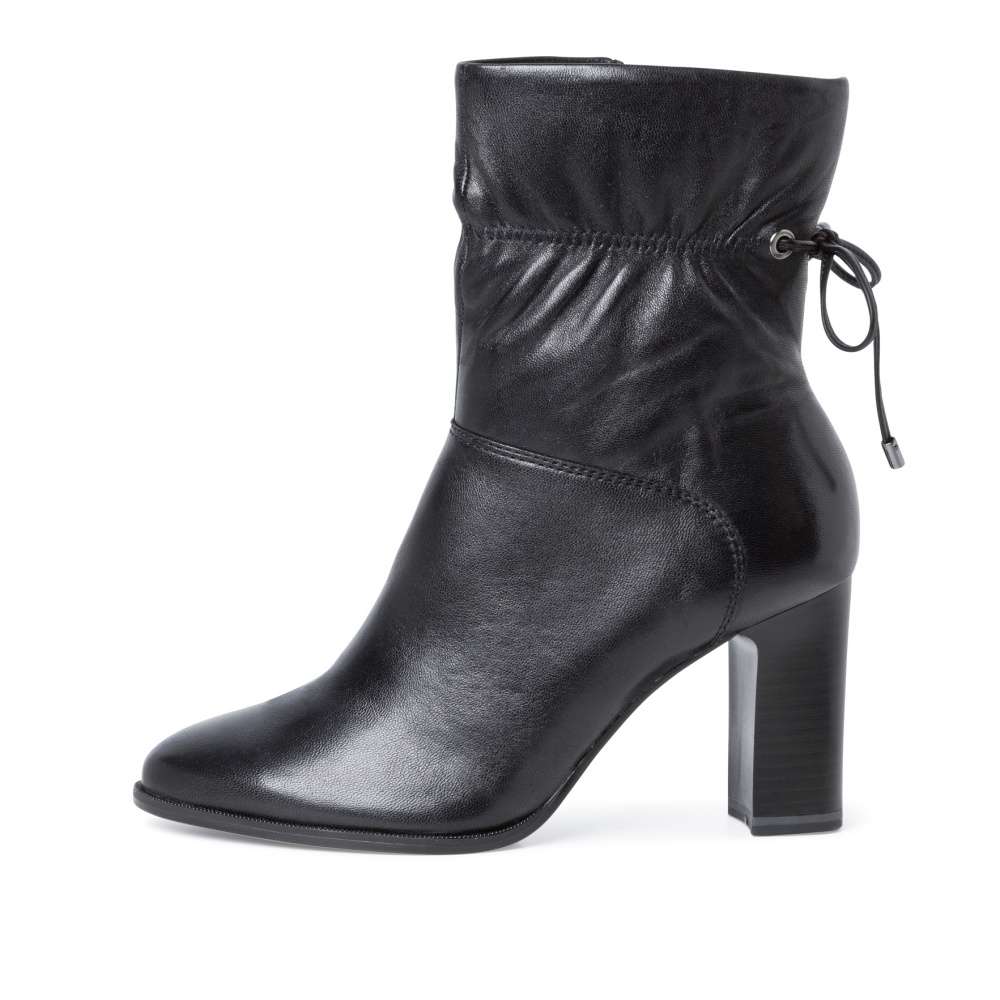 Vyšší kotník značky TAMARIS je dokonalou botičkou pro Váš nákupní košík, nesmí tam chybět. Svršek Botičku zdobí jemně nakrabacená guma, která je vzadu zavázaná na stylovou mašličku. Svršek je vyroben z hladké kůže, z vnitřní strany boty je funkční zip pro snadné obutí. Stélka Vyjímatelná měkká stélka Vám dodá komfort, přizpůsobí se tvaru nohy a díky tomu se nemusíte bát, že v nich nevydržíte celý den. Podešev Designová podešev je vybavena protiskluzovou funkcí. Vysoký podpatek činí 8,5 cm s technologií, která tlumí nárazy. Model je skvělou volbou pro Vaše příležitosti, ale taktéž i na pracovní záležitosti. Můžete doplnit stylovou kabelkou a kabátkem. Technologie: ANTIshokk, ANTIslide, Stélka Touch-it Paměťová stélka: ANO Vyjímatelná stélka: ANO