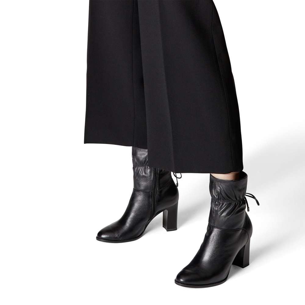 Botičku zdobí jemně nakrabacená guma, která je vzadu zavázaná na stylovou mašličku. Svršek je vyroben z hladké kůže, z vnitřní strany boty je funkční zip pro snadné obutí.