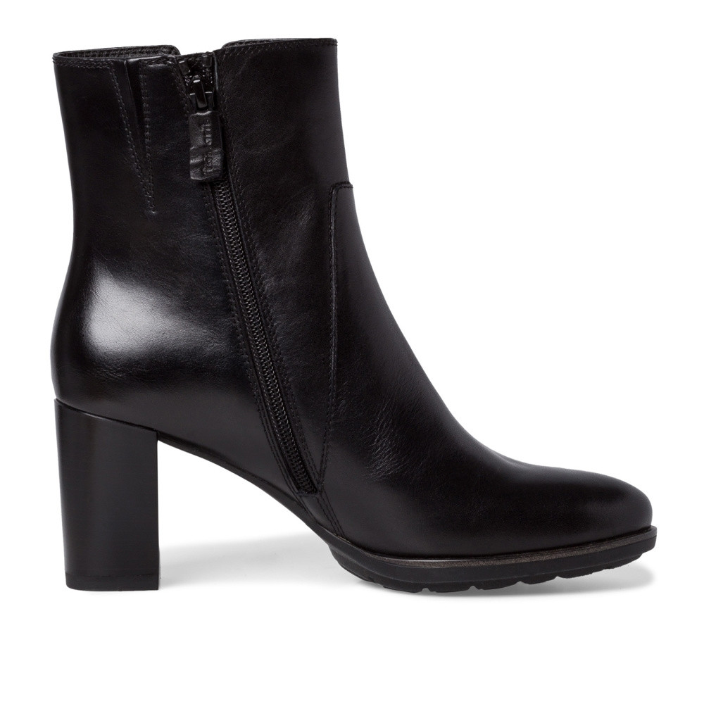 Tato originální dámská kotníková bota značky TAMARIS je vhodným kandidátem do Vašeho nákupního košíku. Na botě jsou všité okrasné kroužky, které jsou svisle uspořádané od nejmenšího po největší. Bota je zdobena logem značky a z vnitřní strany je funkční zip pro snadné obutí. Svršek a podšívka jsou z kvalitního materiálu a ten dodává botě jedinečný look. Designová podešev je vybavena protiskluzovou technologií a v 7,5 cm podpatku je zavedena funkce proti otřesům a nárazům. Nahoďte kabát či bundu a vyražte s plnou parádou do města či do práce. Technologie: ANTISHOKK – speciální odpružující prvek v podpatku, který tlumí nárazy a otřesy způsobené chůzí o cca 50% a tím šetří páteř, meziobratlové ploténky a klouby. Dlouhodobě tedy ulevuje celé partii zad. ANTISLIDE – obuv s patentovaným protiskluzovým prvkem v podpatku, který výrazným způsobem snižuje riziko uklouznutí na kluzkém povrchu.