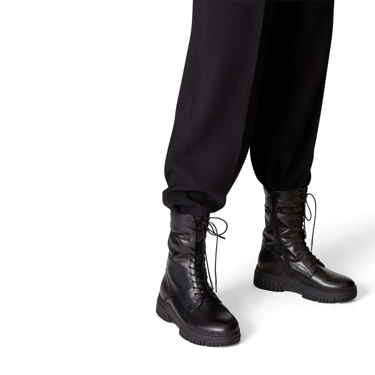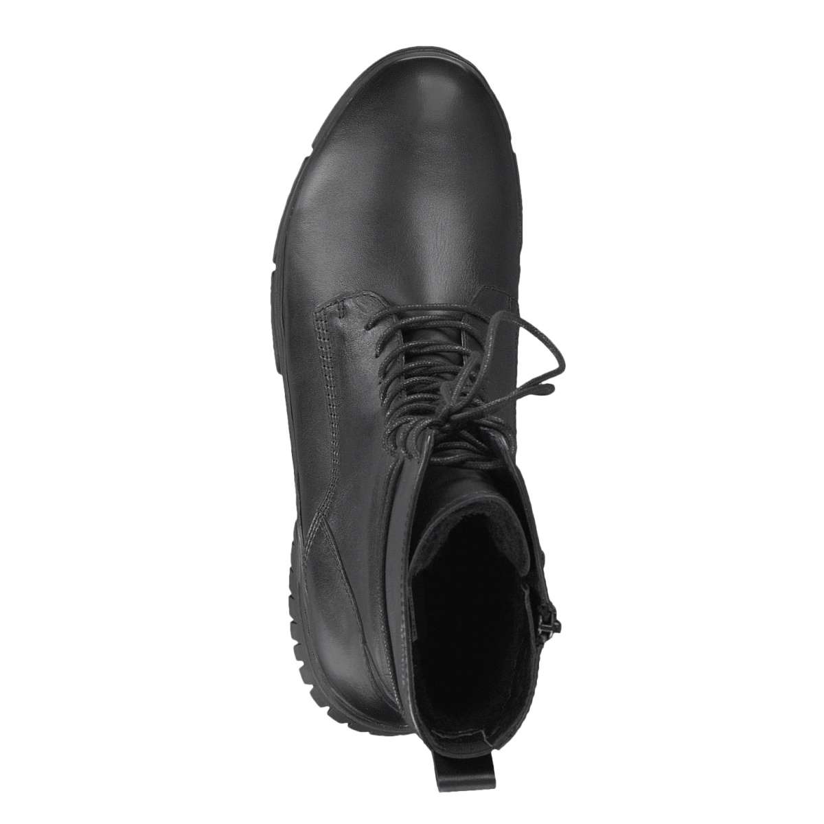 Hladký svrchní materiál je ozdoben prošíváním a zajímavým uchycením tkaniček. Pro snadné obutí je na vnitřní straně funkční zip a šněrováním kulatými tkaničkami si obuv přizpůsobíte dle požadavků.