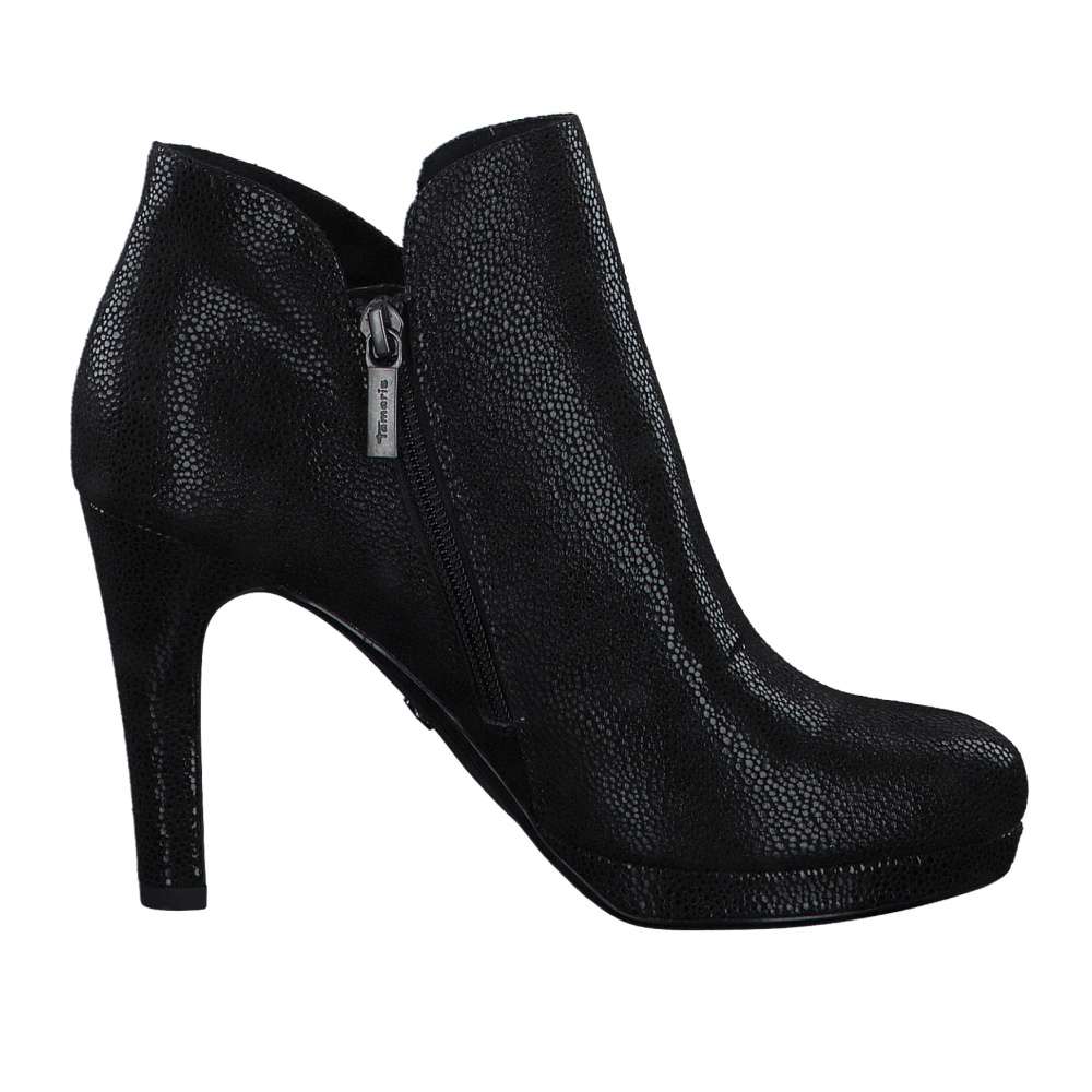 Dámské kotníky značky TAMARIS v extravagantním provedení Vás okouzlí. Tyto botičky na vysokém podpatku s netradičním vzorem Vás udělají nepřehlédnutelnou. Pro snadné obutí poslouží zip na vnitřní straně obuvi. O maximální pohodlí se postará stélka s technologií TOUCH-IT. S tímto kouskem oživíte nejeden outfit na každou příležitost.