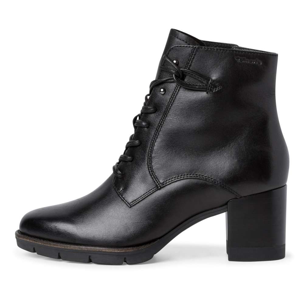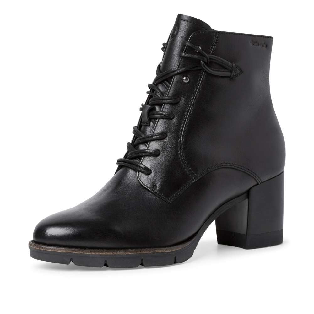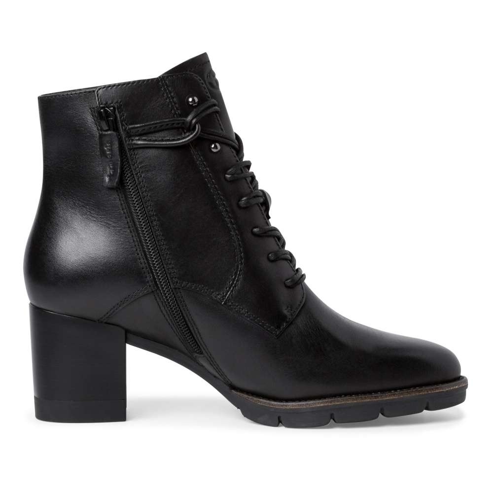 Detailní informace Dámské elegantní kotníky značky TAMARIS na širším podpatku rozhodně musíte mít. Hladký kožený svršek je zdoben jemným prošíváním a praktickým šněrováním tkaničkami. Pro snadné a rychlé obutí poslouží zip na vnitřní straně obuvi. S tímto pohodlným kouskem skvěle doplníte Váš outfit do práce i do města.