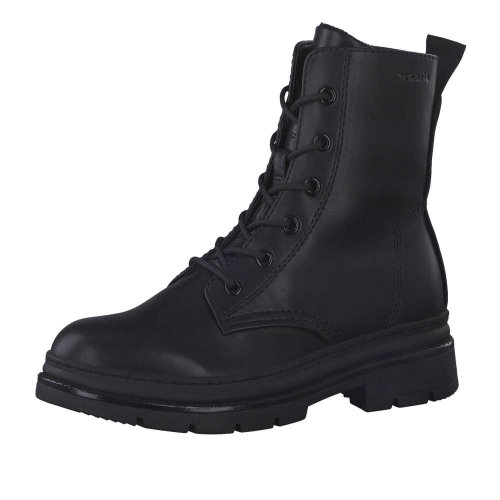 Dámské elegantní kotníky značky TAMARIS Vás okouzlí na první pohled. Hladký svršek s jemným prošíváním dotváří elegantní vzhled této obuvi. Pro snadné obutí poslouží šněrování tkaničkami a funkční zip na vnitřní straně obuvi. Měkká stélka a kvalitní podešev zajistí maximální komfort na každém kroku. S tímto decentním a pohodlným kouskem skvěle doplníte nejeden outfit během všedních dnů.