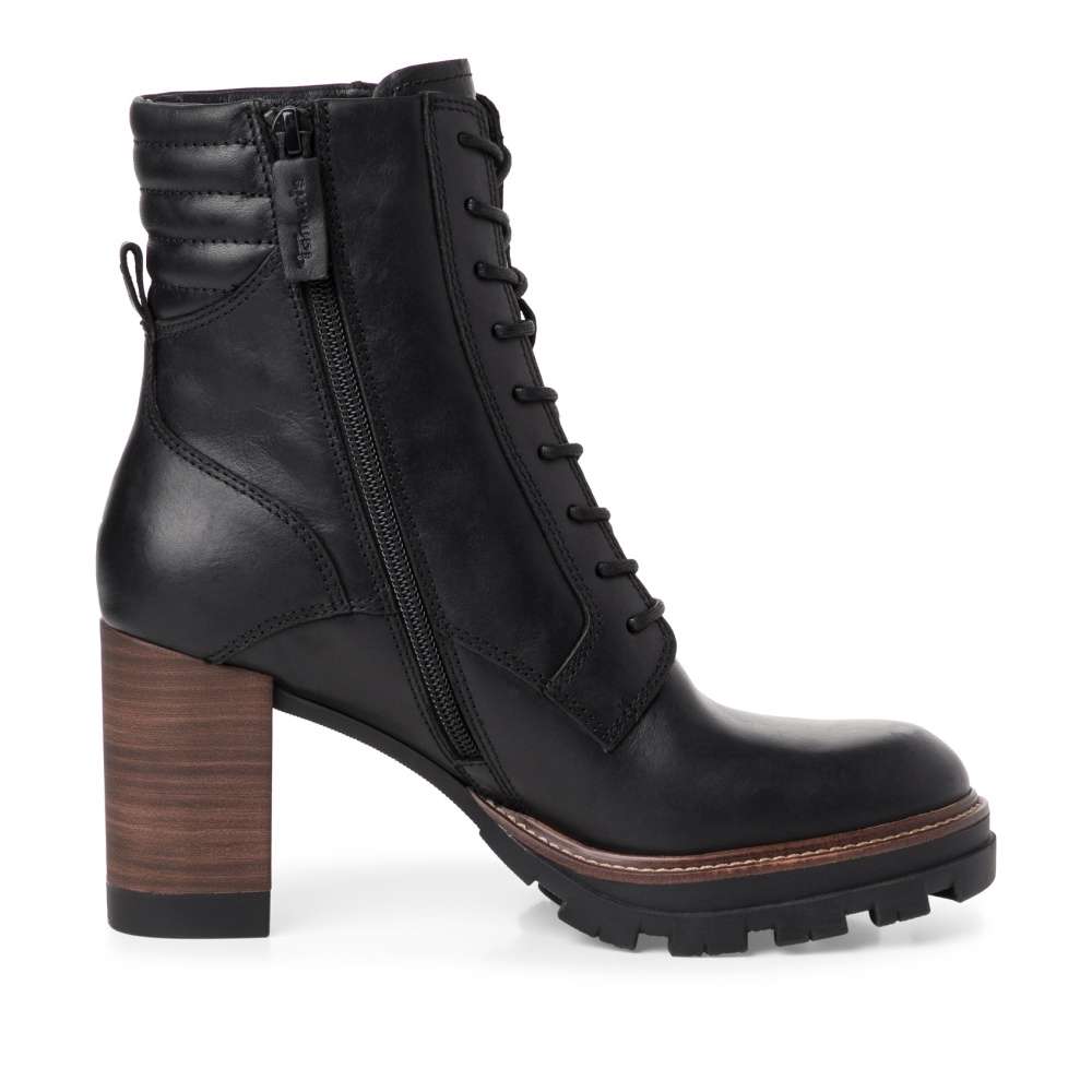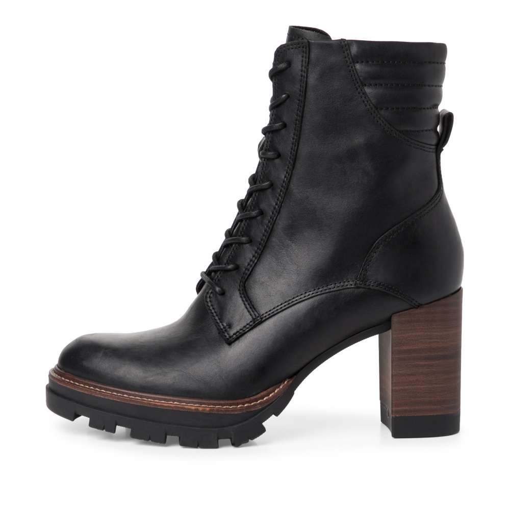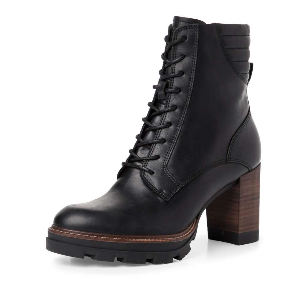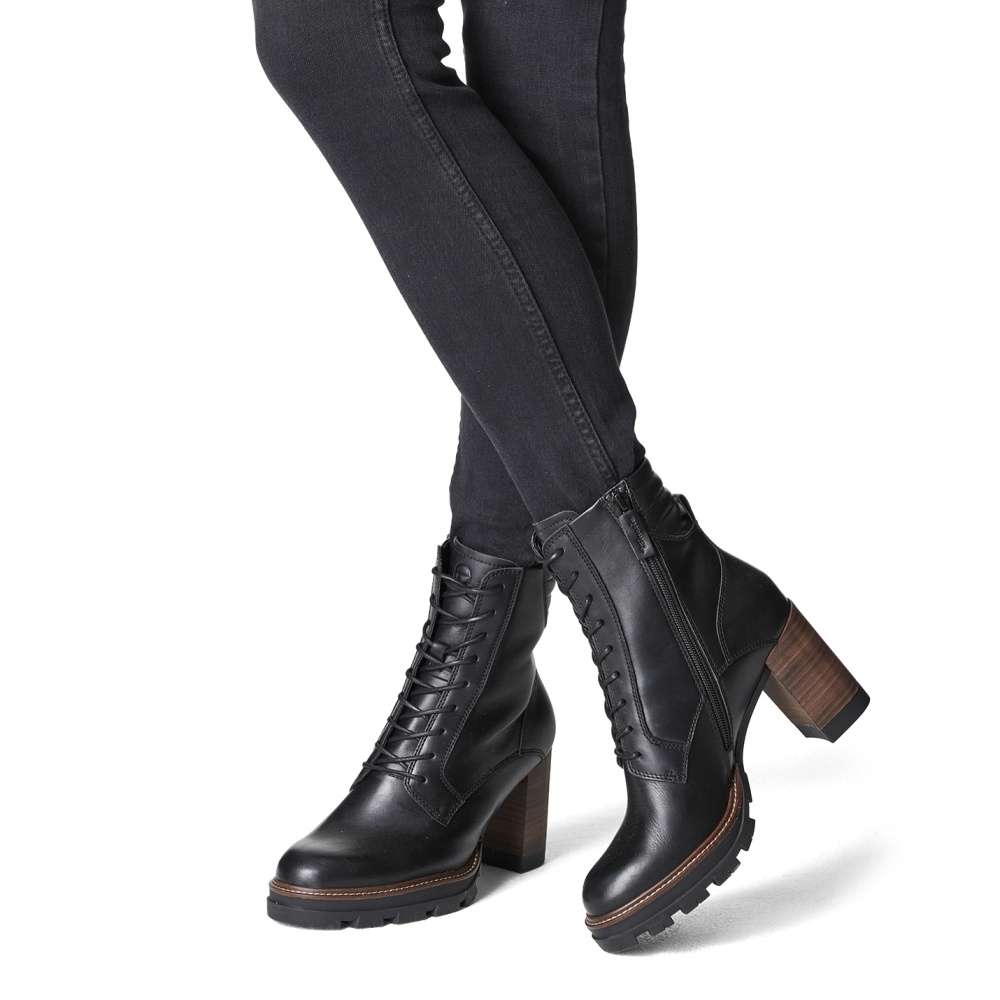 Detailní informace Dámská obuv s vysokým podpatkem a prošívaným zadním lemem u horního okraje od značky TAMARIS. Svrchní materiál je vyroben z pravé přírodní usně v černé barvě. Pro ještě snadnější nazutí je zde použit funkční zip na vnitřní straně a tkaničkami na šněrování si je můžete upravit přesně podle Vašich představ. S měkkou stélkou Touch-it a s hrubou podešví se můžete těšit na pohodlnou a komfortní chůzi po celý den nošení. S těmito botami budete vypadat sebevědomě a stylově zároveň.