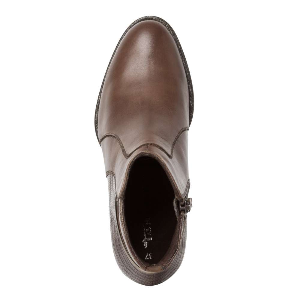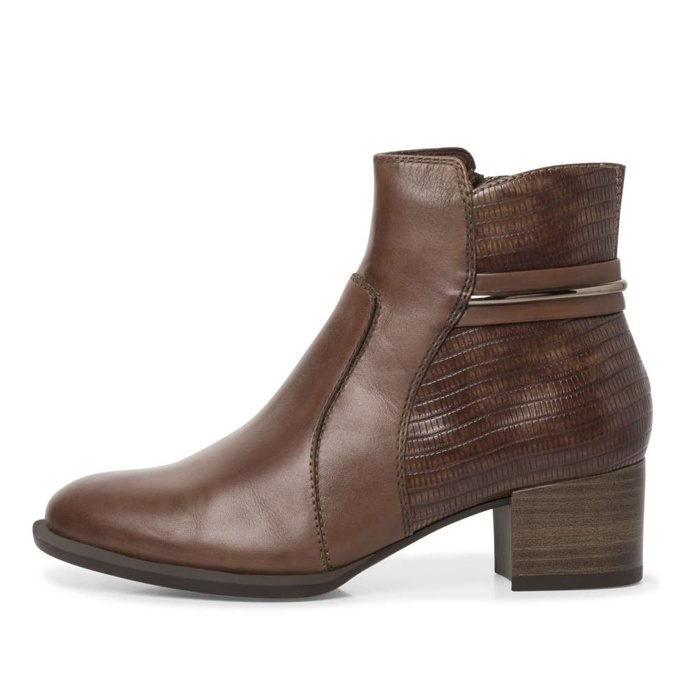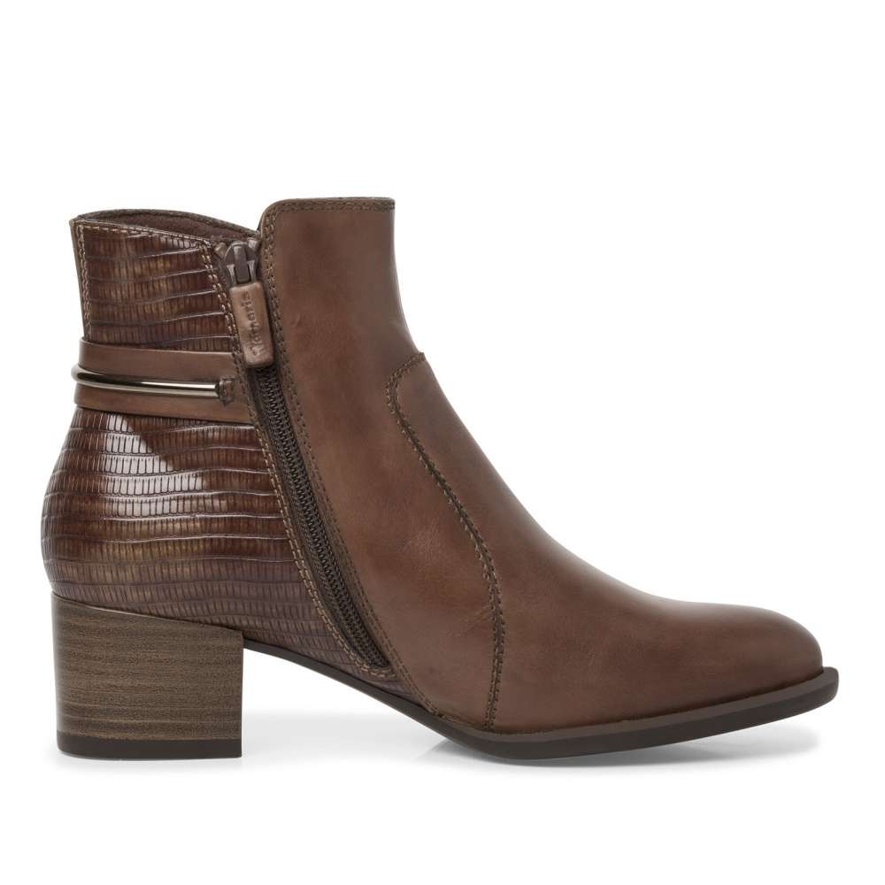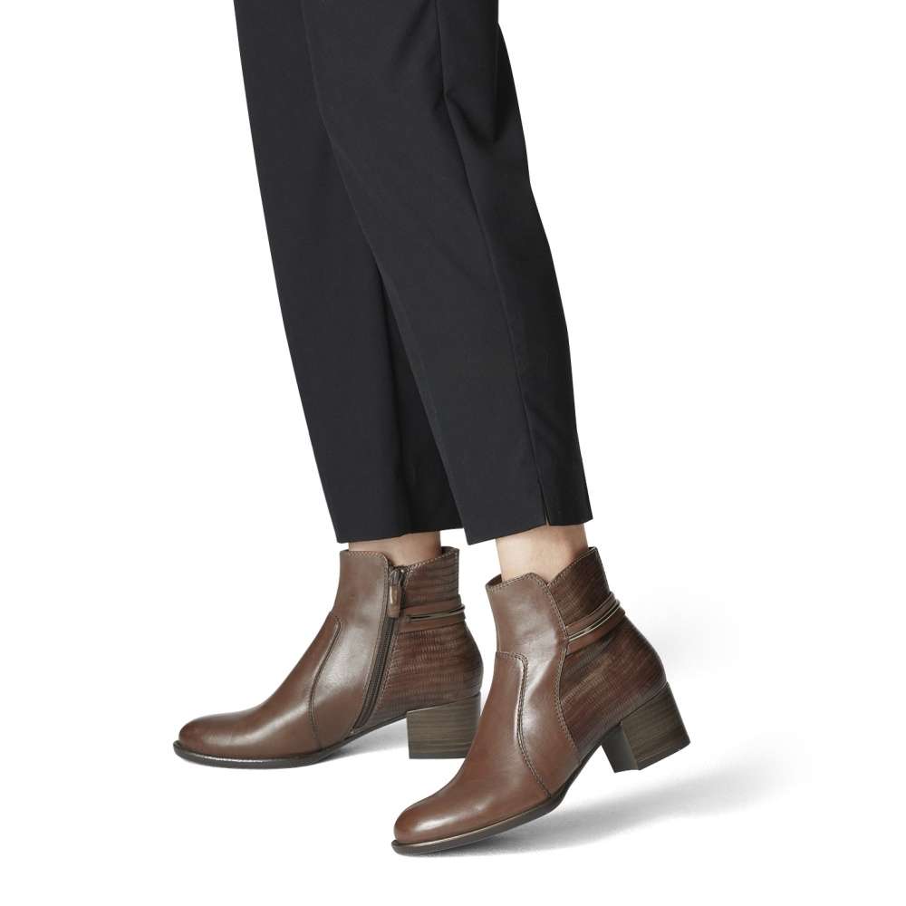Stylová dámská obuv od značky TAMARIS je jedinečným modelem, díky vzorované zadní části a kovovému komponentu. Svrchní materiál je tvořen kombinací pravé přírodní usně a kvalitní syntetiky. Funkční zip na vnitřní straně se postará o snadné nazutí. S paměťovou stélkou Touch It a protiskluzovou podešví se můžete těšit na pohodlnou a komfortní chůzi po celý den nošení. Tyto boty se budou skvěle hodit ke kabelce z naší široké nabídky.