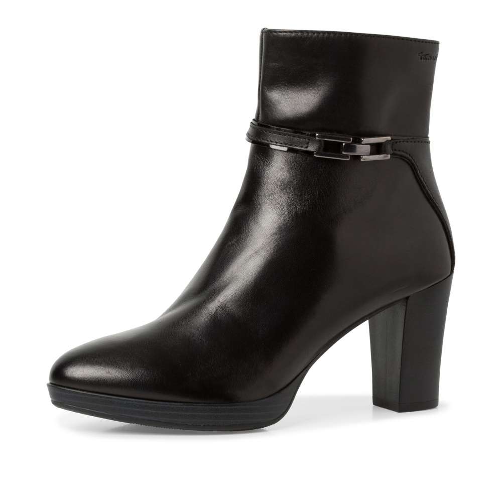 Tyto dámské kotníky na vyšším podpatku od značky TAMARIS jsou zajímavé svou kombinací hladkého svršku a zdobného pásku s kovovým prvkem. Určitě oceníte, že k pohodlnému obutí slouží praktický zip z vnitřní strany. Měkká stélka Vám zaručí pohodlí po celý den. Obohaťte si Váš šatník tímto originálním modelem. Technologie: Touch-it – měkká stélka, která se dokonale přizpůsobí tvaru nohy, a díky tomu při nošení zajišťuje optimální pohodlí.