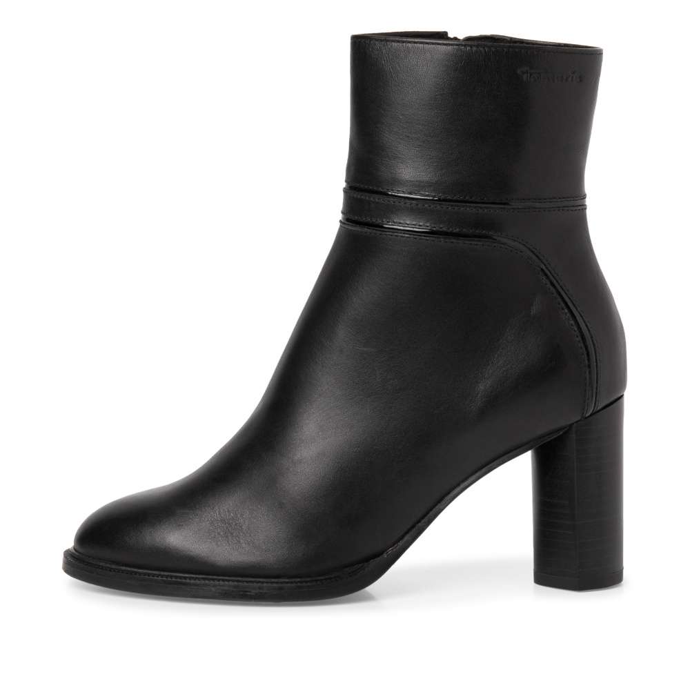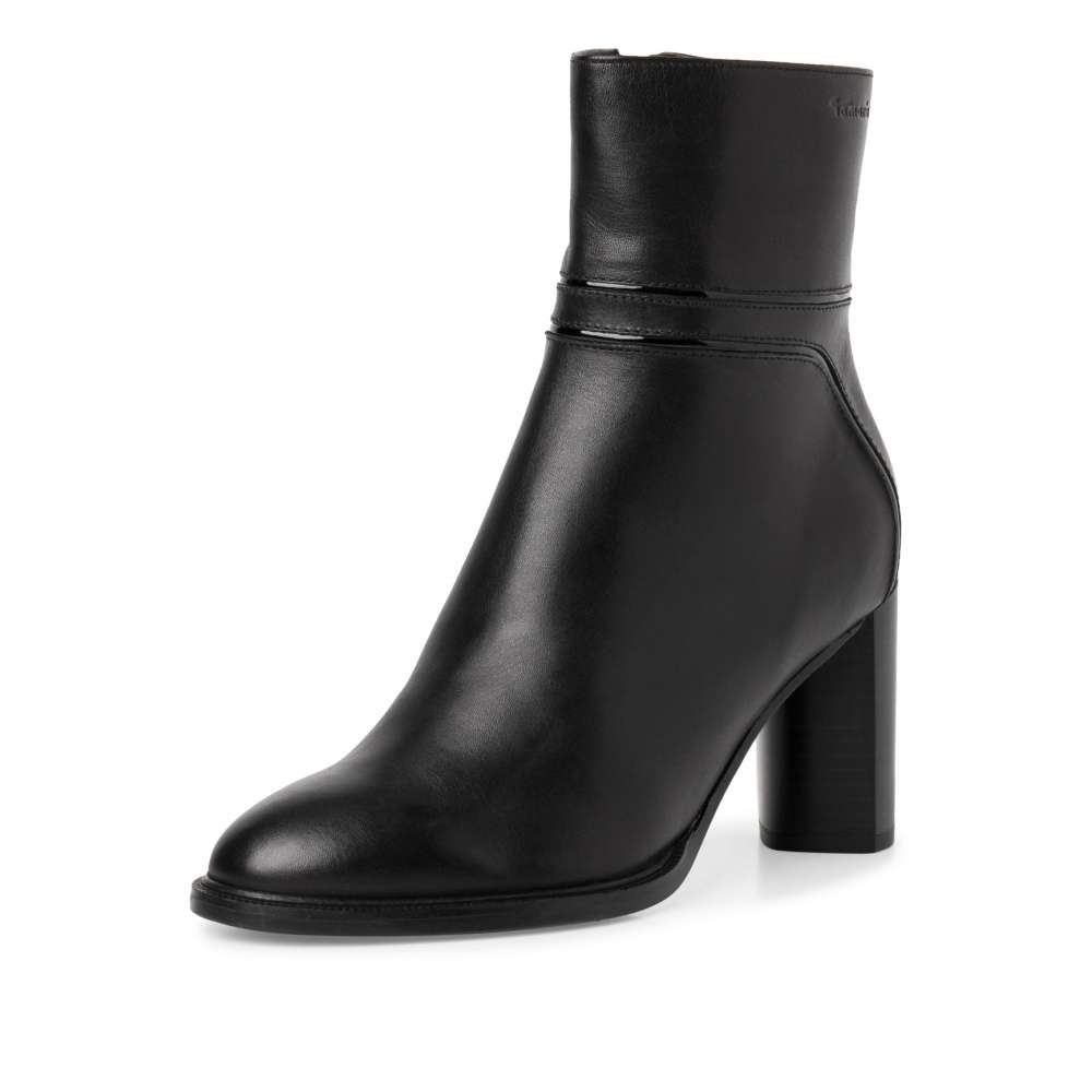 Tento dámský kotník značky TAMARIS na vysokém podpatku je vyrobený z přírodní usně v černé barvě. Hladký materiál a lesklý prvek ve svršku vytváří elegantní vzhled. Určitě oceníte, že k pohodlnému obutí slouží praktický zip z vnitřní strany. Měkká stélka Vám zaručí pohodlí po celý den. Tento model se bude krásně vyjímat například k zimnímu kabátu a riflím. Technologie: Touch-it – měkká stélka, která se dokonale přizpůsobí tvaru nohy, a díky tomu při nošení zajišťuje optimální pohodlí.