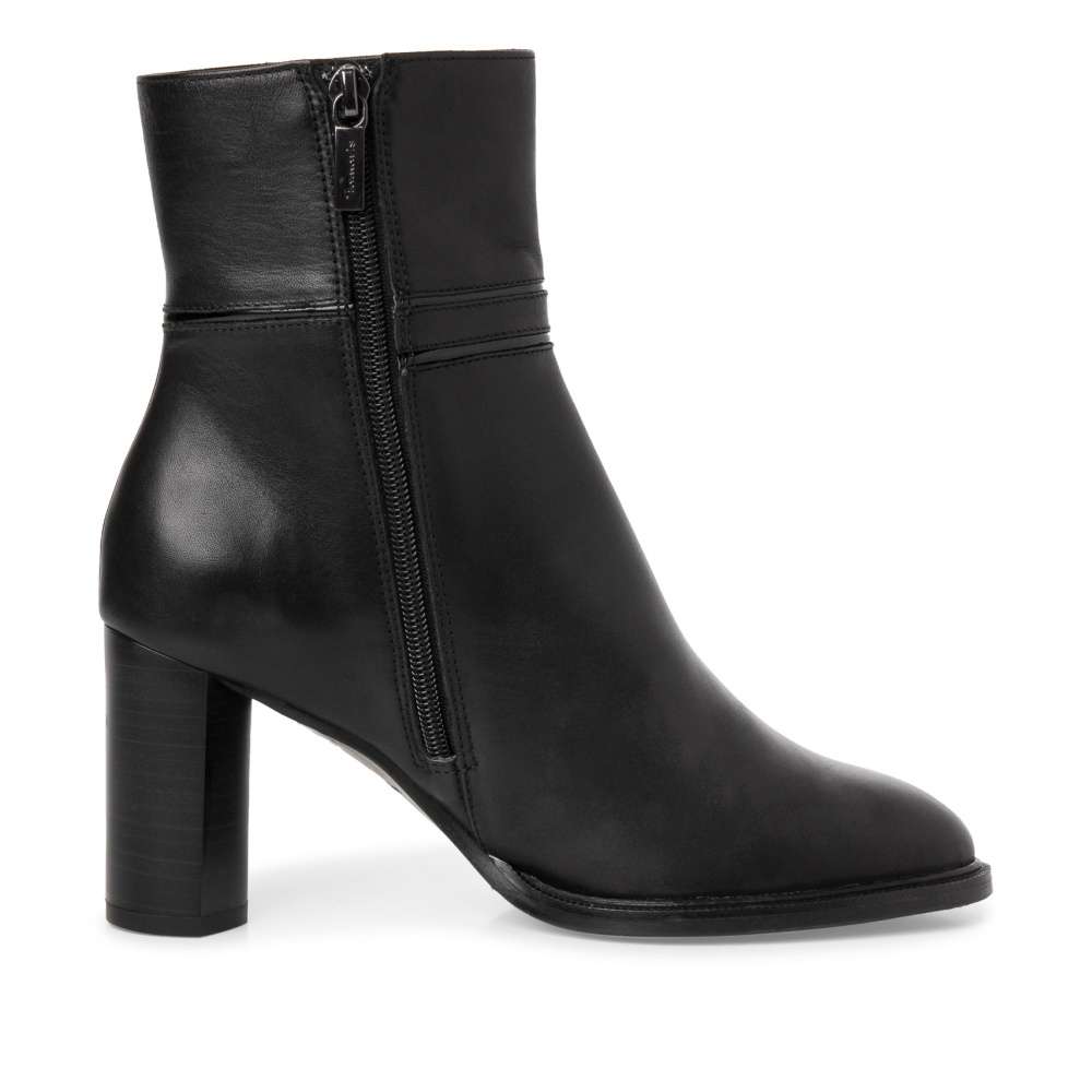 Detailní informace Tento dámský kotník značky TAMARIS na vysokém podpatku je vyrobený z přírodní usně v černé barvě. Hladký materiál a lesklý prvek ve svršku vytváří elegantní vzhled. Určitě oceníte, že k pohodlnému obutí slouží praktický zip z vnitřní strany. Měkká stélka Vám zaručí pohodlí po celý den. Tento model se bude krásně vyjímat například k zimnímu kabátu a riflím.