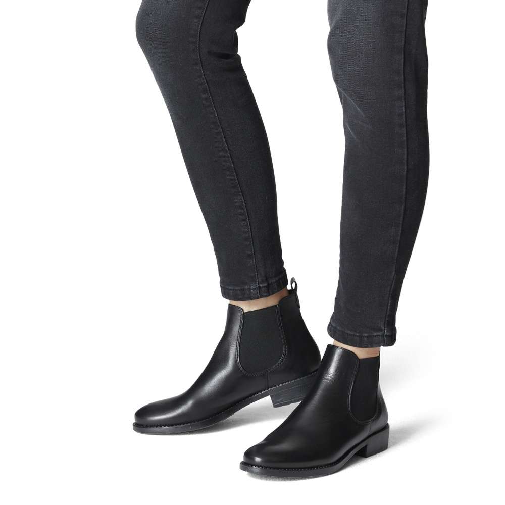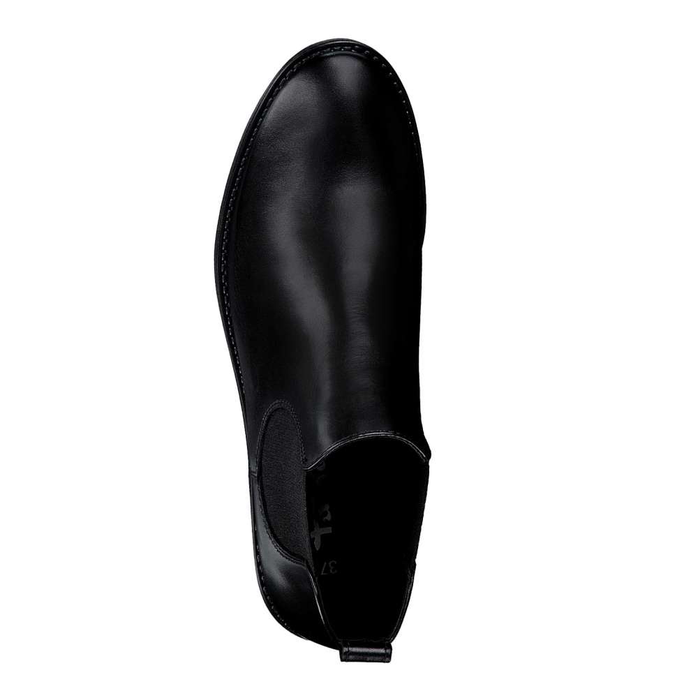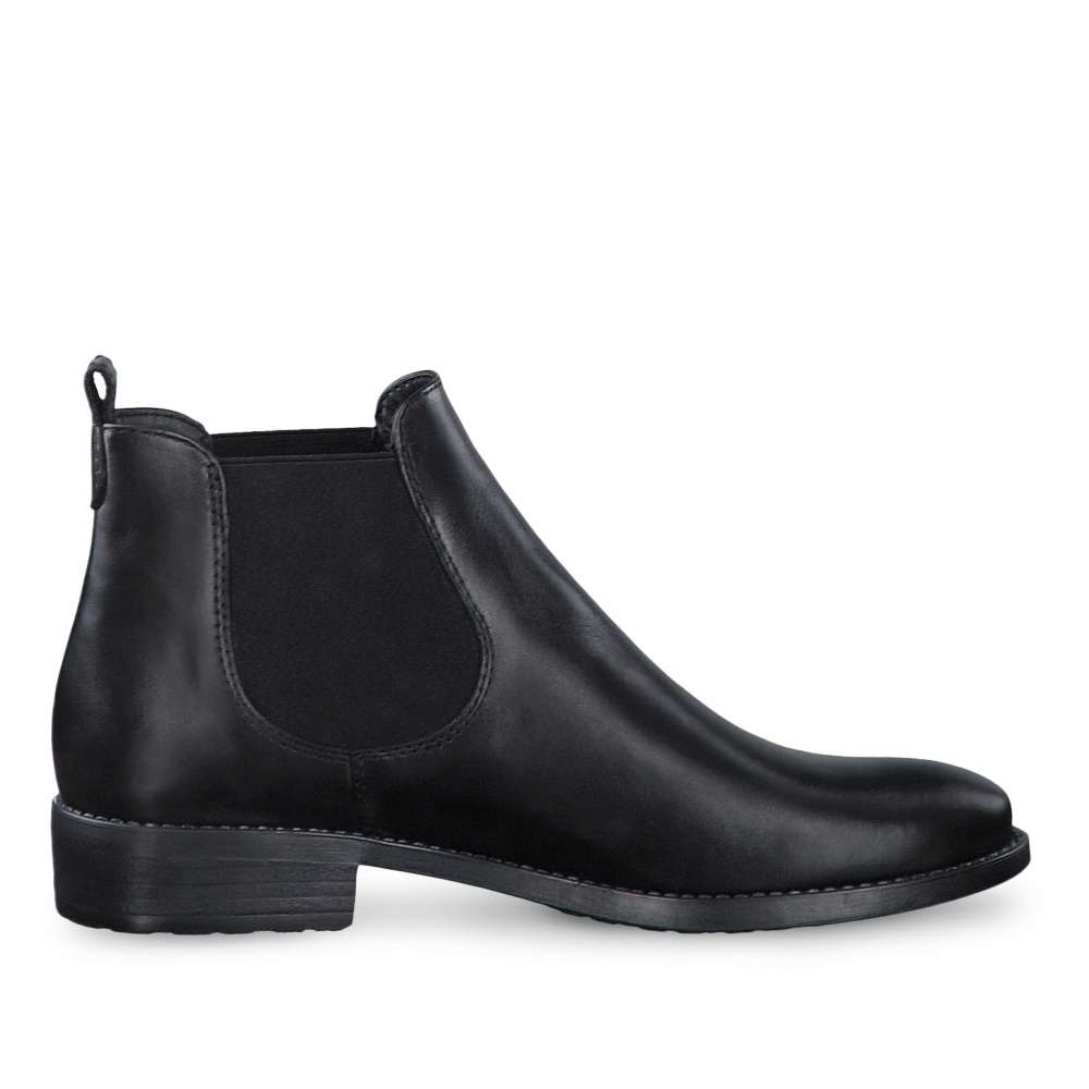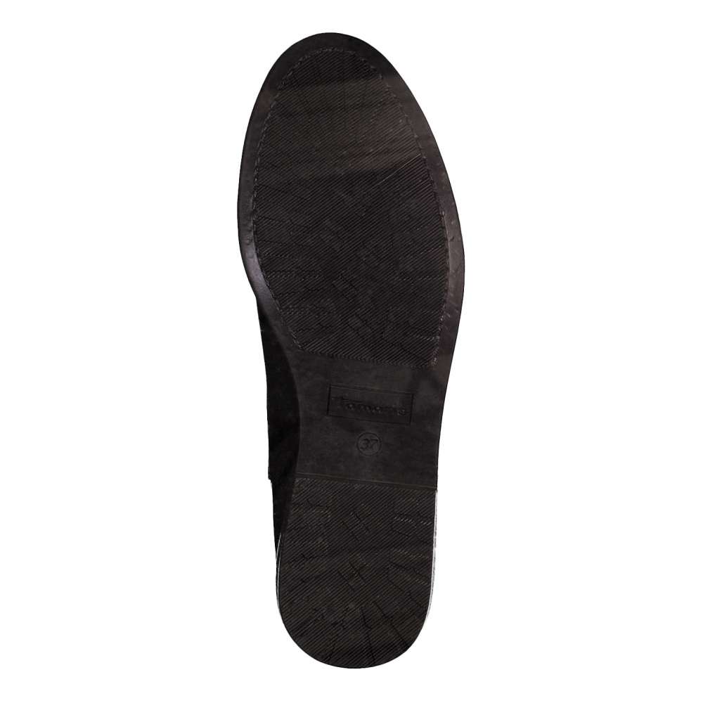 Stylová kotníková obuv od značky Tamaris je klasika, kterou si zamilujete právě díky své jednoduchosti. Pro snadné obutí jsou po stranách vsazené pružné gumičky a poutko u horního okraje. Pohodlí po celý den nošení Vám zaručí stélka vyrobena z měkkého materiálu. Podešev s nízkým podpatkem vysokým cca 3 cm má jemný vzorek. Tyto boty se budou skvěle hodit ke kožené bundě a malé Crossbody kabelce.