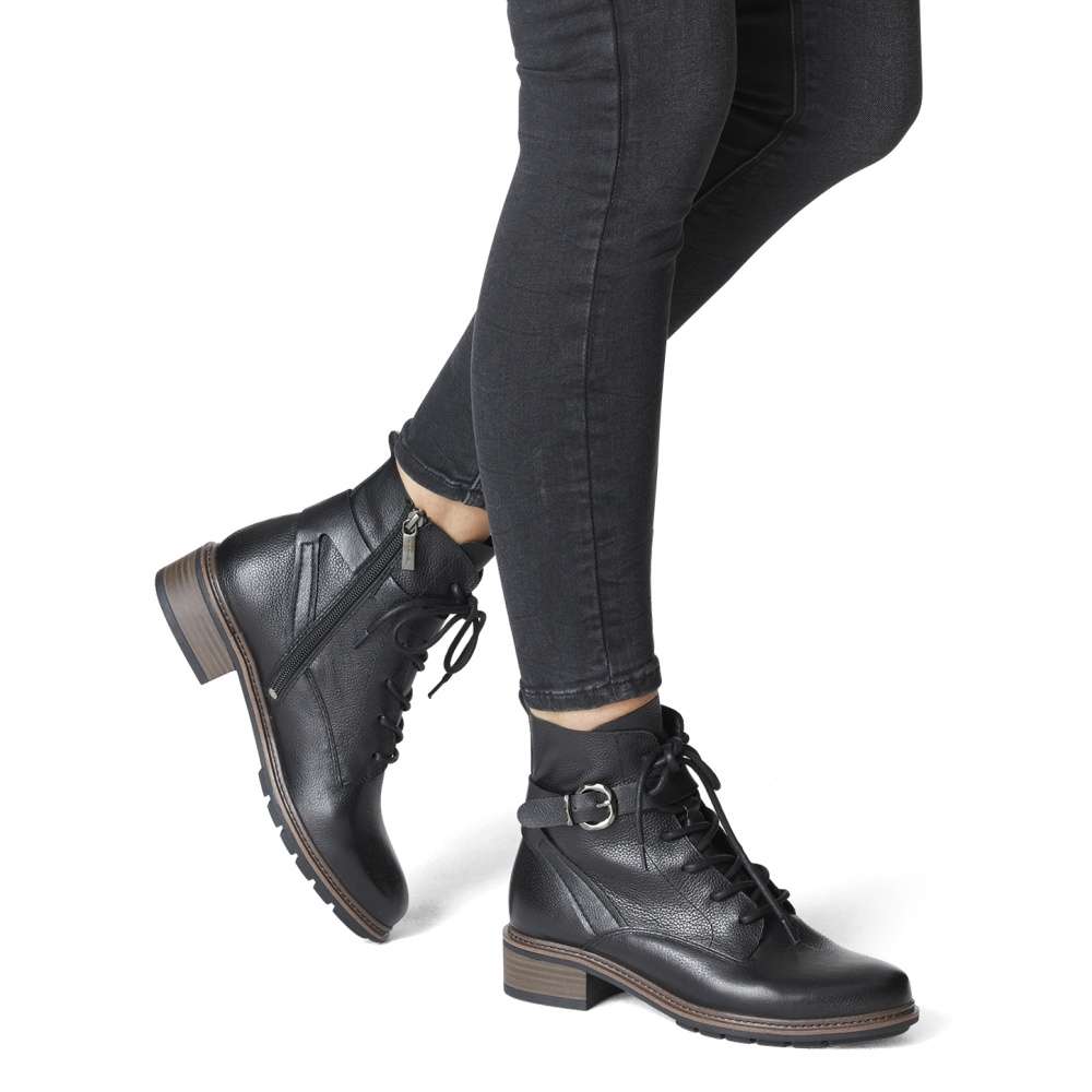 Dámské kotníkové botky s pásky a kovovou přezkou Vás určitě zaujmou. Kombinace svršků včetně jemného prošití doladí celkový vzhled botky. Pomocí funkčního zipu a poutka do boty lehce vklouznete a s klasickým šněrováním botu upravíte do maximálního pohodlí. Obuv je s patentovaným protiskluzovým prvkem, která výrazným způsobem snižuje riziko uklouznutí na kluzkém povrchu. Díky měkké stélce, která se dokonale přizpůsobí tvaru Vaší nohy a budete si připadat, jako v bavlnce. Technologie: Touch-it – měkká stélka, která se dokonale přizpůsobí tvaru nohy, a díky tomu při nošení zajišťuje optimální pohodlí. ANTISLIDE – obuv s patentovaným protiskluzovým prvkem, který výrazným způsobem snižuje riziko uklouznutí na kluzkém povrchu.