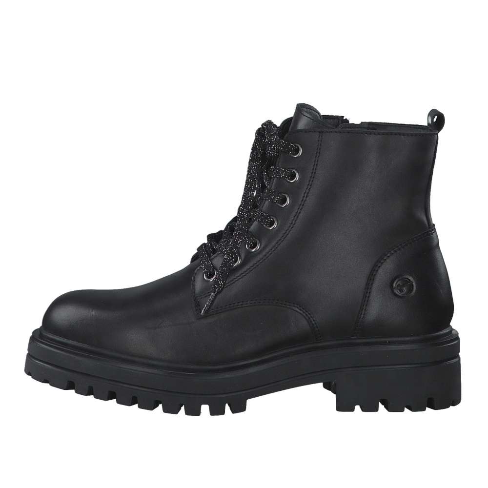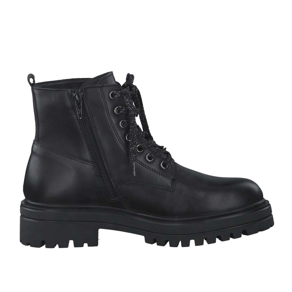 Detailní informace Tyto elegantní nízké kotníkové kozačky značky Tamaris si oblíbíte na první pohled. Jednoduchý svršek vyrobený z pravé kůže je jemně prošívaný, a z vnitřní strany doplněn u funkční zip, pro usnadnění nazutí. Tkaničky jsou protkány stříbrnou nití, což modelu dodává na jedinečnosti a stylu. Kvalitní podešev v kombinaci s měkkou vyjímatelnou stélkou Vám zajistí pohodlí i při celodenním nošení. Díky svému vzhledu je snadno zkombinujete jak s elegantní sukní, tak kalhotami.