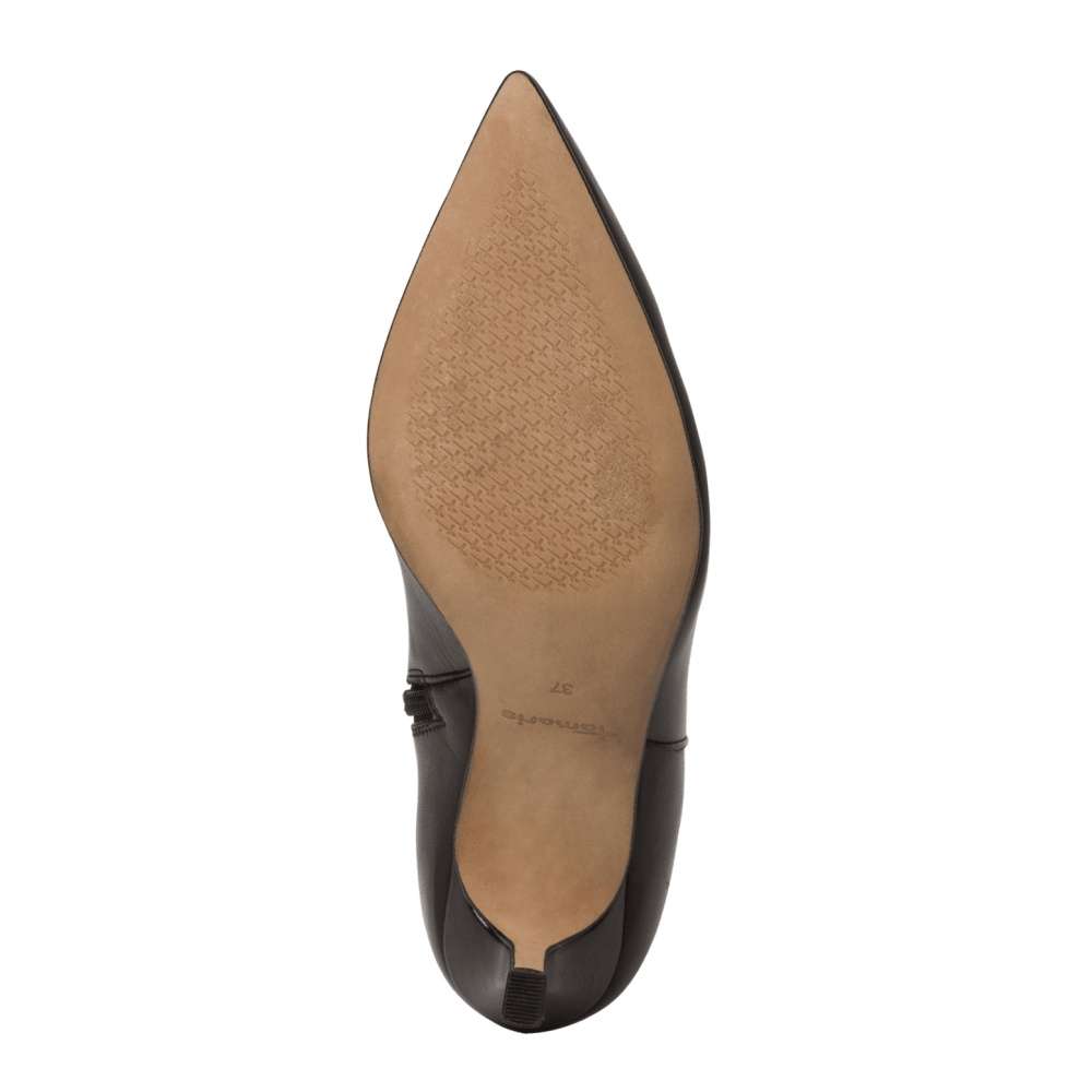 Neskutečně elegantní jsou tyto kotníkové botky značky TAMARIS. Na první pohled zaujmou vysokým úzkým podpatkem a úzkou špičkou. Povrch je vyroben z kvalitní hladké kůže. Pro snadné obutí poslouží zip na vnitřní straně. Vedle zipu je všita malá pružná gumička pro lepší přizpůsobení boty Vaší noze. S měkkou stélkou Touch It se můžete těšit na pohodlnou chůzi po celý den nošení. Botky můžete doplnit kabelkou z naší nabídky a Váš outfit bude dokonalý.