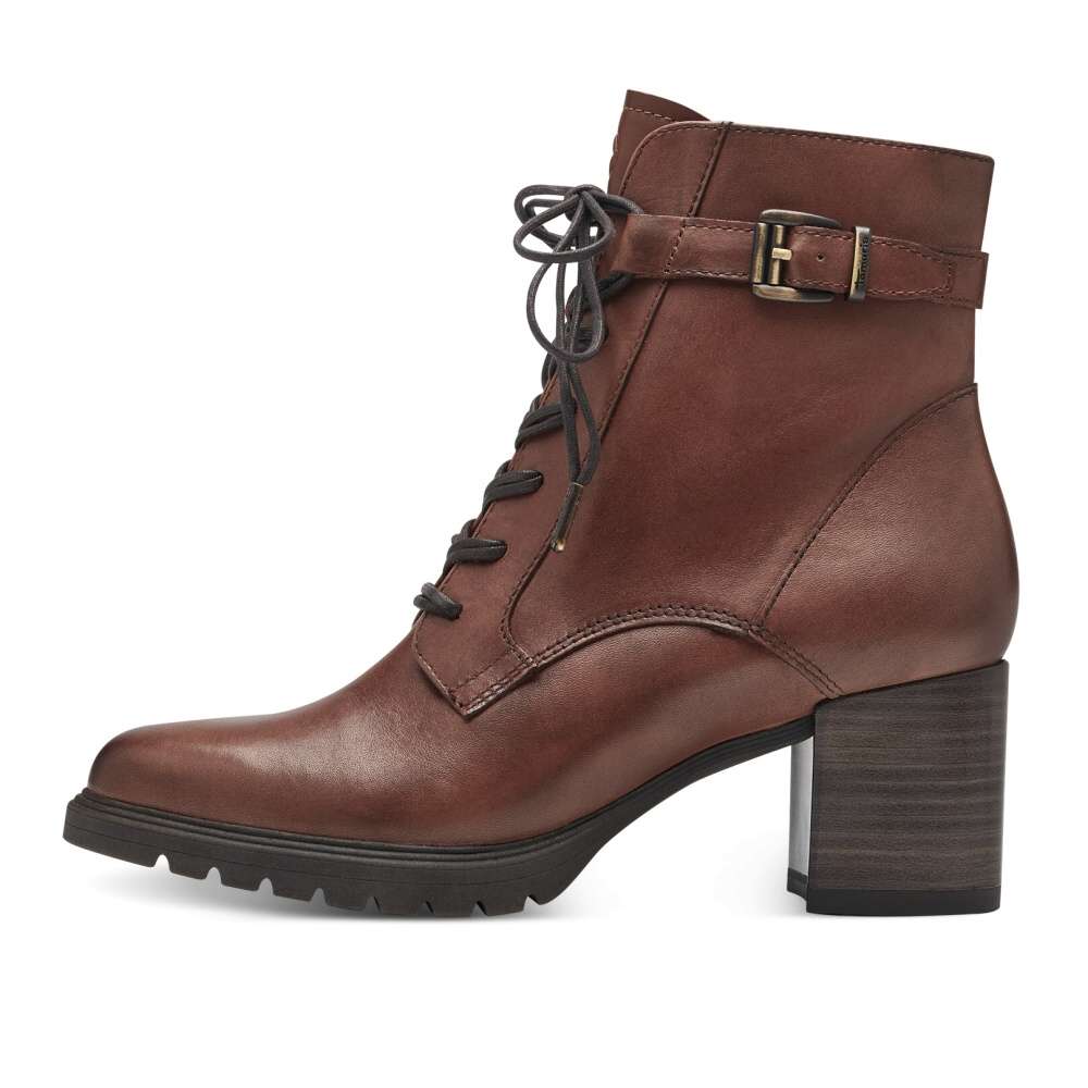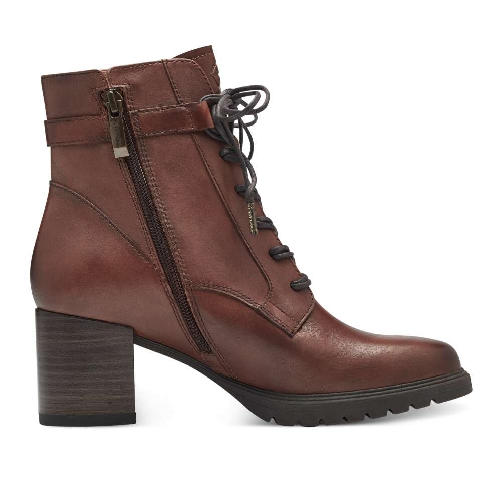 Detailní informace Luxusní dámská obuv TAMARIS na širším podpatku s lehce prošitým svrškem a ozdobným páskem u kotníku. Funkční zip na vnitřní straně skvěle usnadní obutí a šněrováním si boty můžete upravit přesně podle Vašich představ. S měkkou stélkou Touch-It, odpruženým a protiskluzovým prvkem v podpatku se můžete těšit na pohodlnou a komfortní chůzi po celý den nošení. S tímto nápaditým modelem zazáříte kamkoliv jen vejdete, jelikož jej můžete sladit s jakýmkoliv outfitem z Vaší skříně.