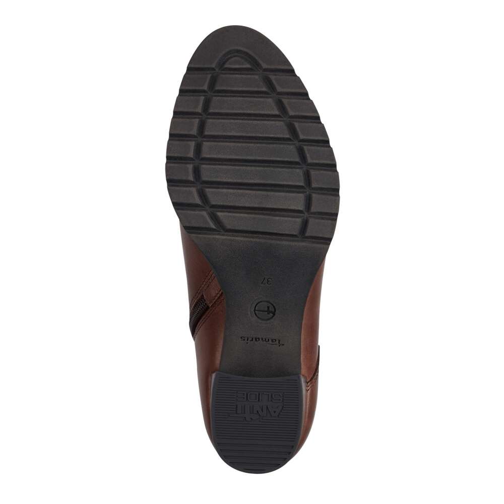 Luxusní dámská obuv TAMARIS na širším podpatku s lehce prošitým svrškem a ozdobným páskem u kotníku. Funkční zip na vnitřní straně skvěle usnadní obutí a šněrováním si boty můžete upravit přesně podle Vašich představ. S měkkou stélkou Touch-It, odpruženým a protiskluzovým prvkem v podpatku se můžete těšit na pohodlnou a komfortní chůzi po celý den nošení. S tímto nápaditým modelem zazáříte kamkoliv jen vejdete, jelikož jej můžete sladit s jakýmkoliv outfitem z Vaší skříně. Technologie: Touch-it – měkká stélka, která se dokonale přizpůsobí tvaru nohy, a díky tomu při nošení zajišťuje optimální pohodlí. ANTISLIDE – obuv s patentovaným protiskluzovým prvkem v podpatku, který výrazným způsobem snižuje riziko uklouznutí na kluzkém povrchu. ANTISHOKK – speciální odpružující prvek v podpatku, který tlumí nárazy a otřesy způsobené chůzí o cca 50 % a tím šetří páteř, meziobratlové ploténky a klouby. Dlouhodobě tedy ulevuje celé partii zad. Díky tomu můžete nosit své oblíbené boty na vysokých podpatcích po celý den i v kanceláři, aniž by Vás bolely nohy.