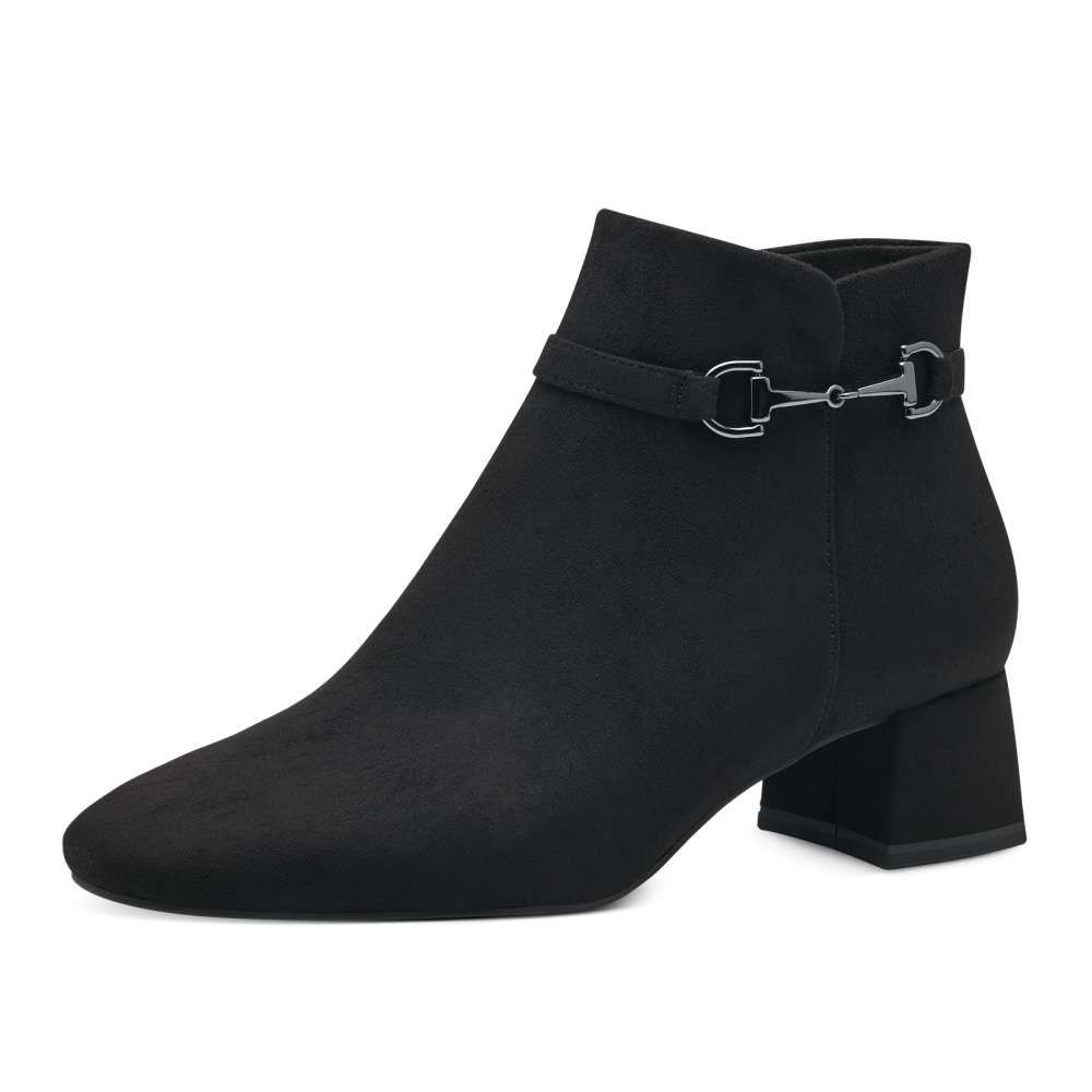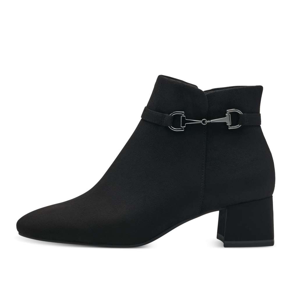 Detailní informace Touto stylovou obuví od značky Tamaris neuděláte krok vedle. Černý svršek zdobí pásek s kovovou přezkou v oblasti kotníku. Díky cca 4,5 cm vysokému podpatku získáte více elegance a ženskosti. Funkční zip na vnitřní straně usnadní Vaše obutí a speciální odpružující prvek v podpatku utlumí nárazy a otřesy způsobené chůzí. Skvělého outfitu dosáhnete třeba kombinací se širokými kalhotami nebo černým kabátkem.