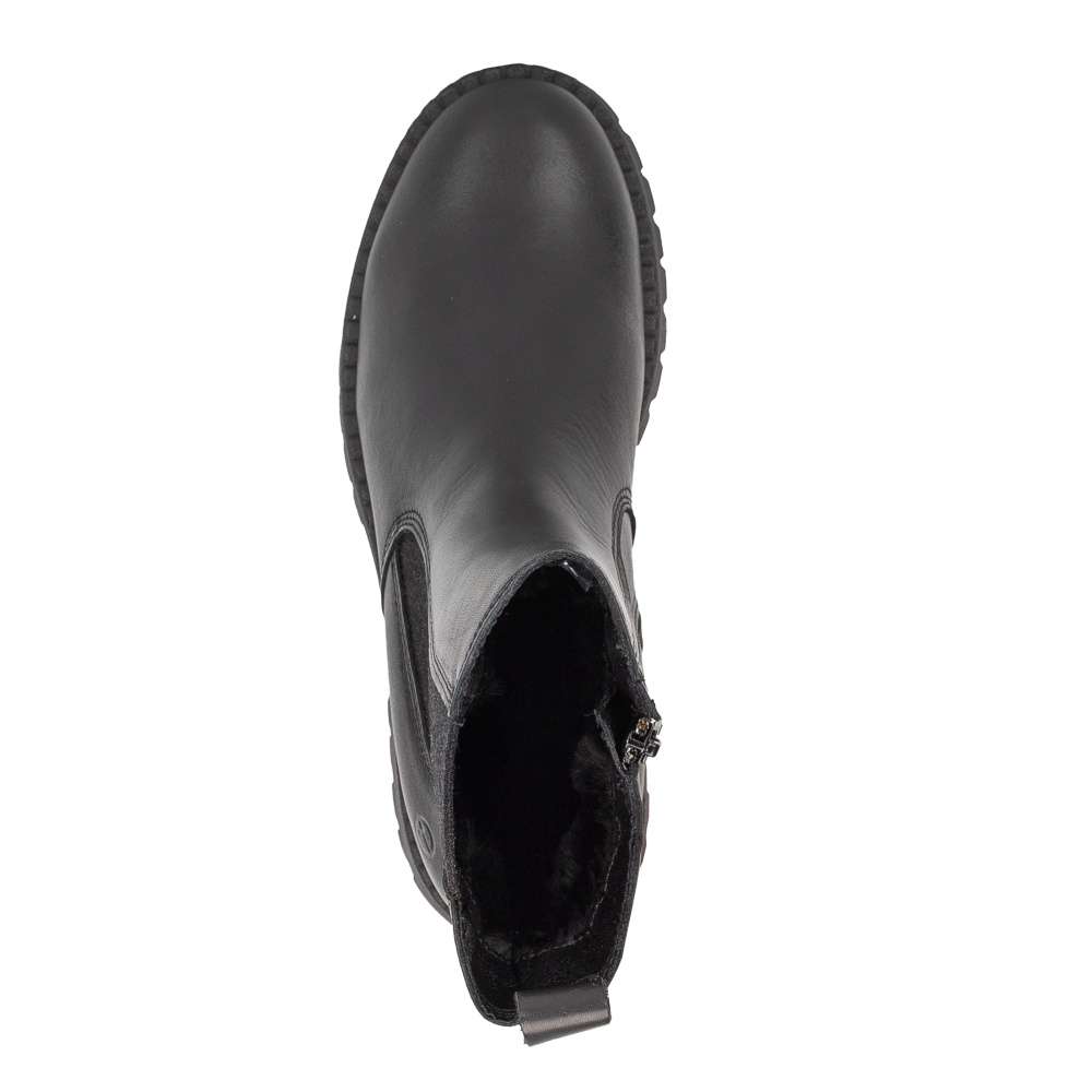 Dámská obuv TAMARIS má elegantní kožený svršek v černé barvě, který dodává botám sofistikovaný vzhled. Pro pohodlné obouvání jsou vybaveny zipem a elastickou gumičkou po stranách. Vyjímatelná stélka a stabilní podešev poskytují spolehlivou oporu a komfort během chůze, což je ideální pro celodenní nošení. Tyto boty jsou skvělou volbou pro ženy, kteří hledají kombinaci elegantního designu, pohodlí a stability ve své obuvi. Technologie: Tato bota je vybavena vyjímatelnou stélkou.