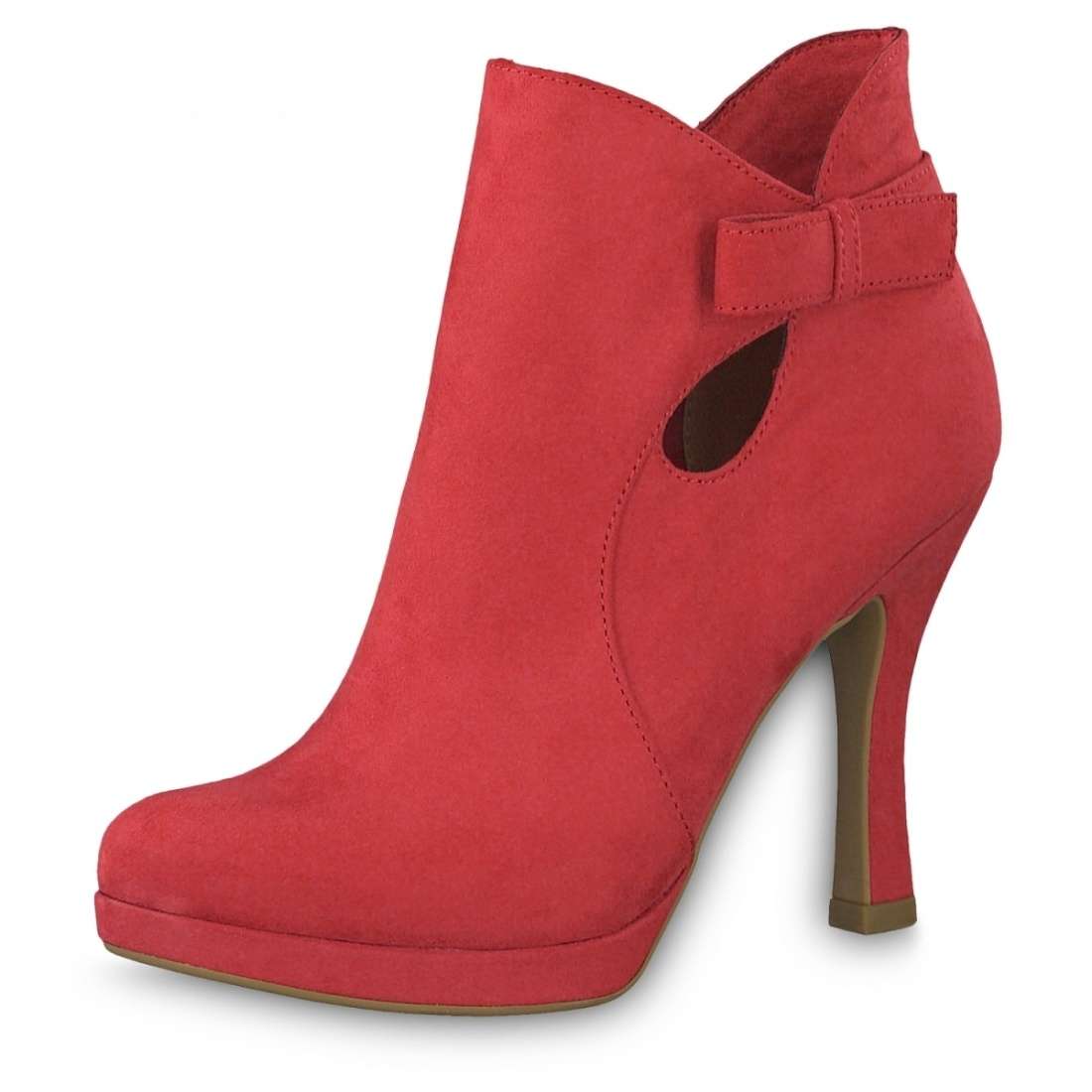 Kotníkové červené boty s mašličkou, značky TAMARIS.