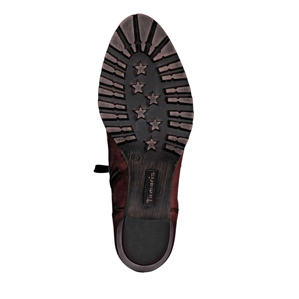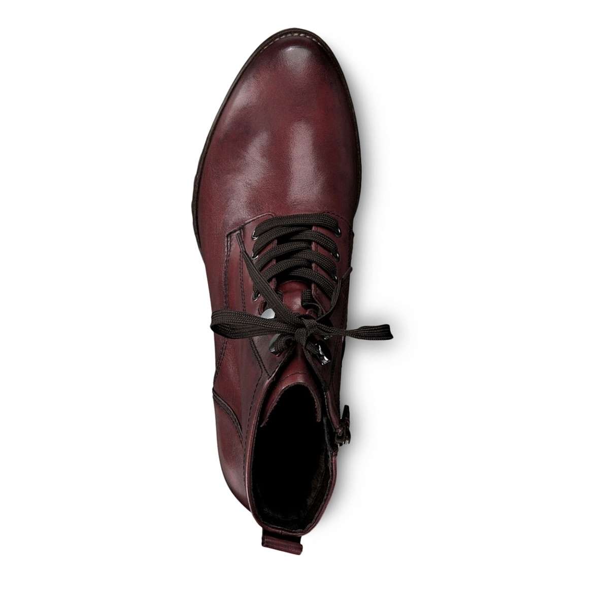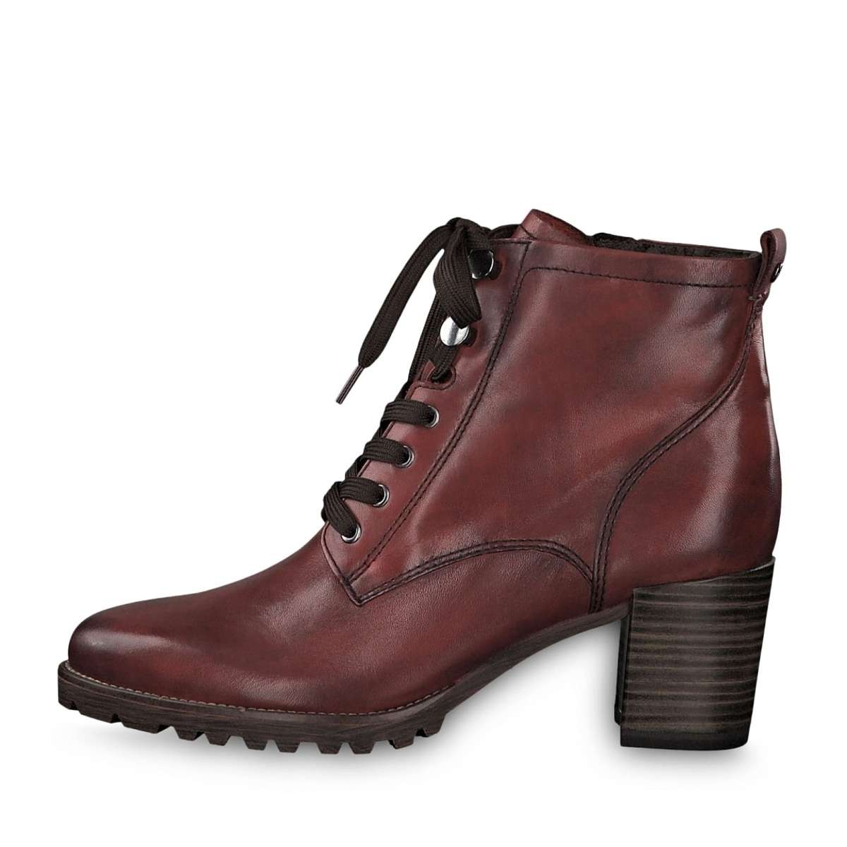 Stylová Šněrovací obuv v kotníkovém stylu od značky TAMARIS potěší každou ženu, která má ráda módu a styl. Svršek je vyrobený z pravé kůže v tmavě červeném provedení a doplňuje ho decentní prošití v části nártu. Pro snadné obutí je na vnitřní straně použit funkční zip a tkaničky, díky kterým si můžete upravit velikost přímo na nohu. Využijete je například na cesty do práce nebo na setkání s přáteli.