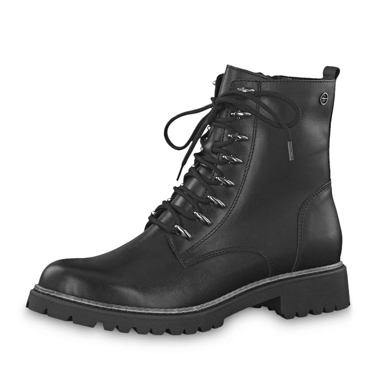 Dámská kotníková obuv z černé kůže na nízkém podpatku, značky TAMARIS.
