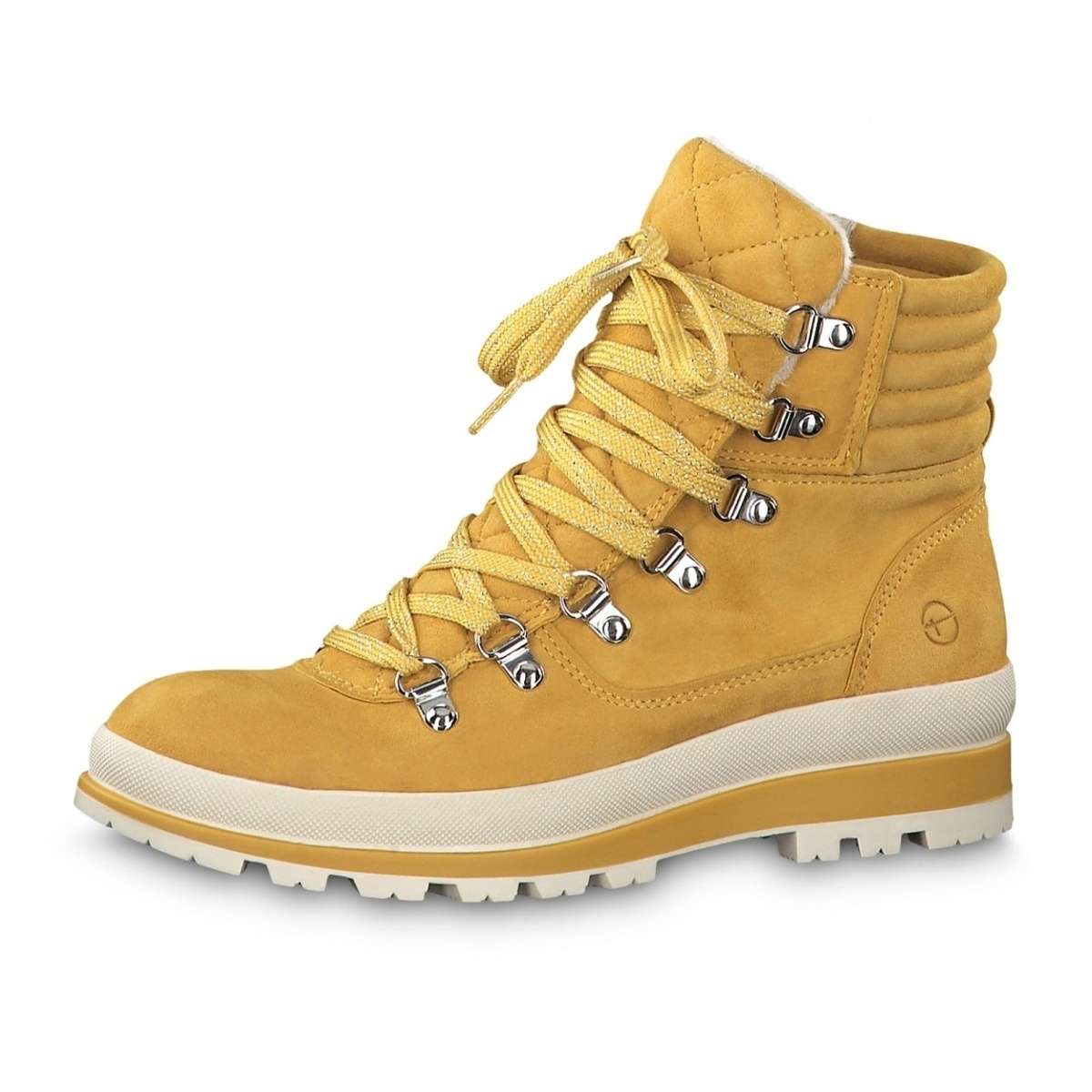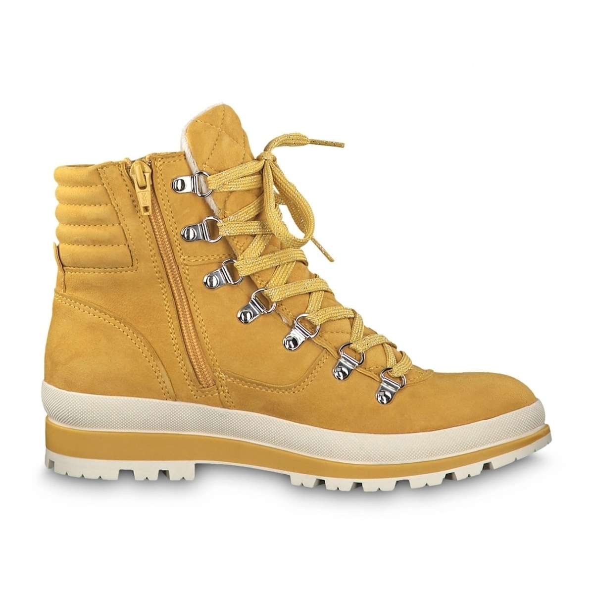 Šmrncovní kotníková obuv v krásné žluté barvě je vyrobena z pravé kůže a zdobena prošíváním. Pro snadné obutí slouží funkční zip z vnitřní strany. Vyrazte do města v kotníčkových botách, které vyrazí dech nejen Vám, ale i Vašemu okolí.
