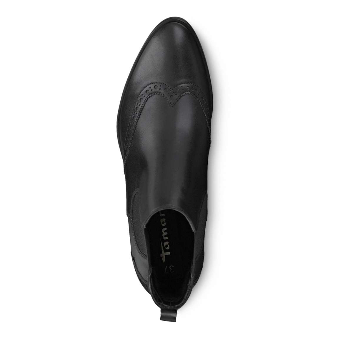 Dámská kotníčková obuv s jemným všitým vzorem v černé barvě, značky TAMARIS