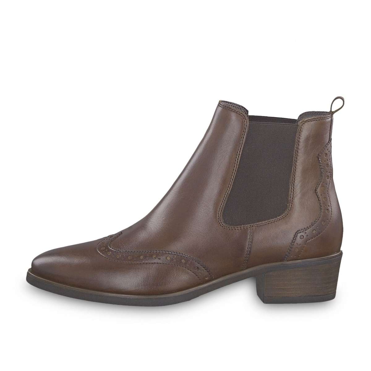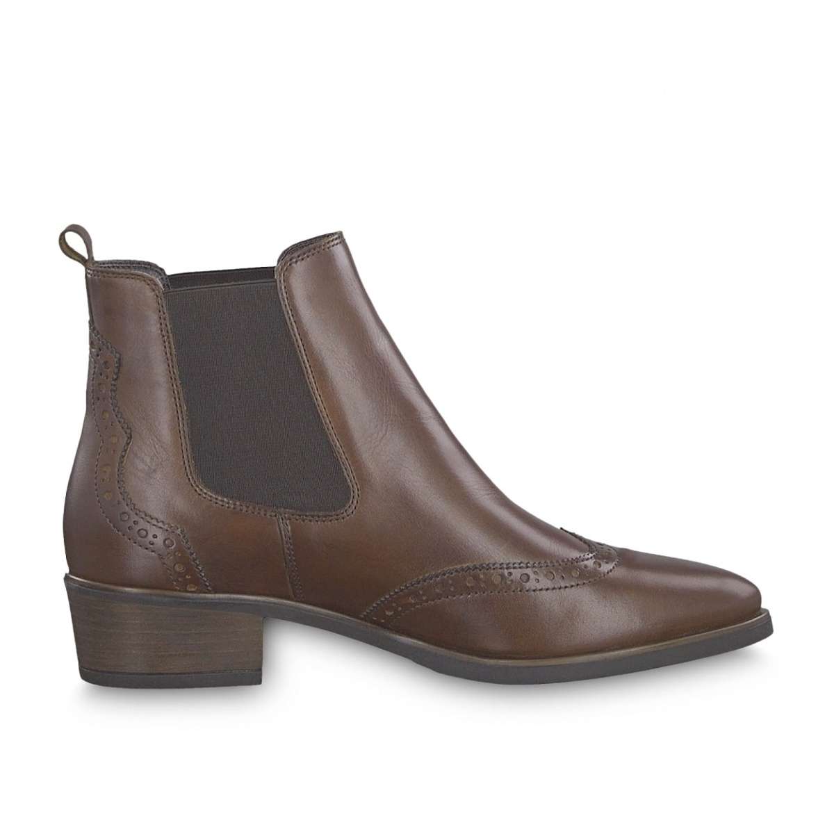 Dámská kotníčková obuv s jemným všitým vzorem v hnědé barvě, značky TAMARIS