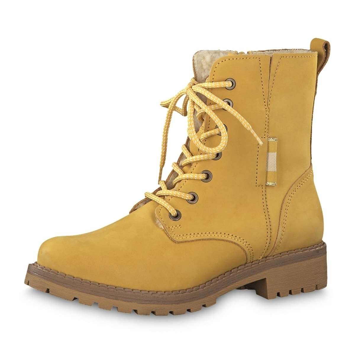 Tento klasický model od značky Tamaris nabízíme hned ve třech variantách, a to v krásných barvách podzimu. Svršek boty je pastelově žlutý, výrazně prošitý a má decentní ozdobu v oblasti kotníku. Podšívka je zateplena jemným kožíškem, díky němuž se budete cítit jako v bavlnce. Obouvání Vám usnadní jak funkční zip a poutko u horního okraje, tak i tkaničky na šněrování. Na procházkách lesem s nimi zkrátka a jednoduše zaujmete.